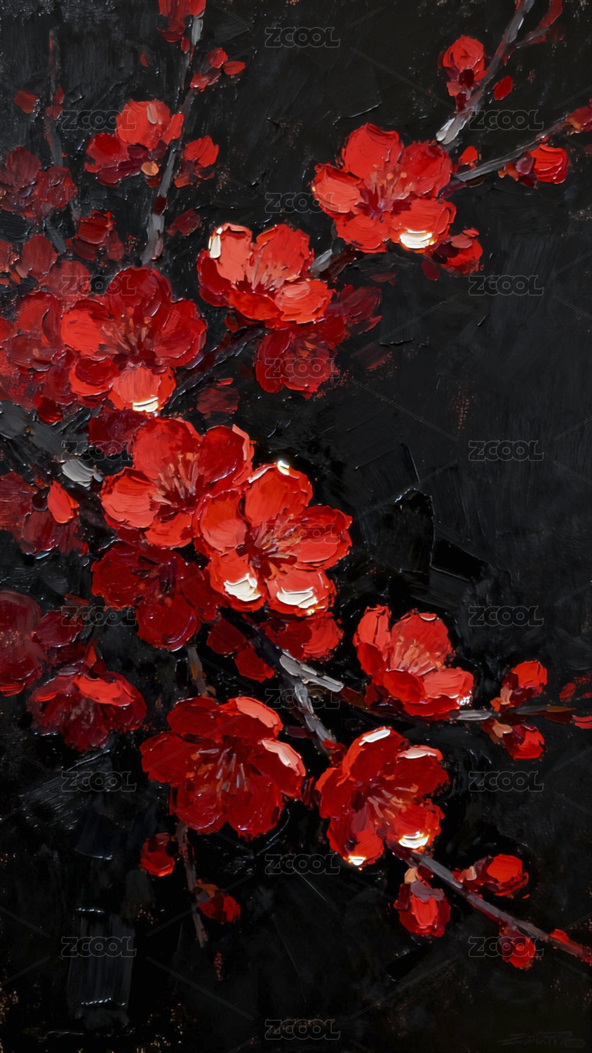 墨色背景红梅花油画
