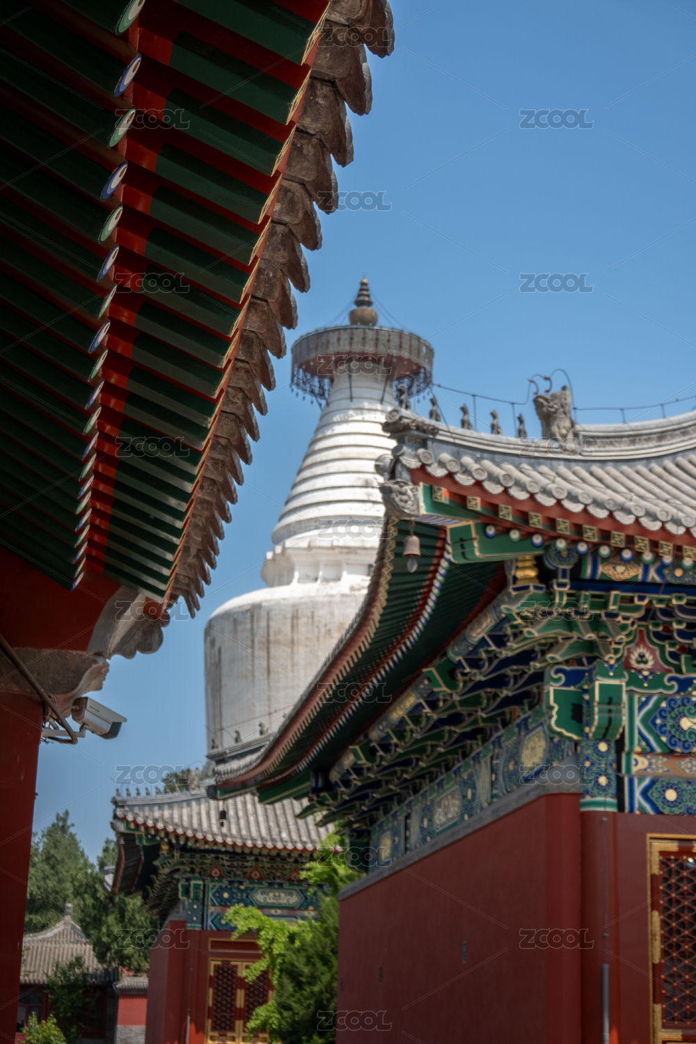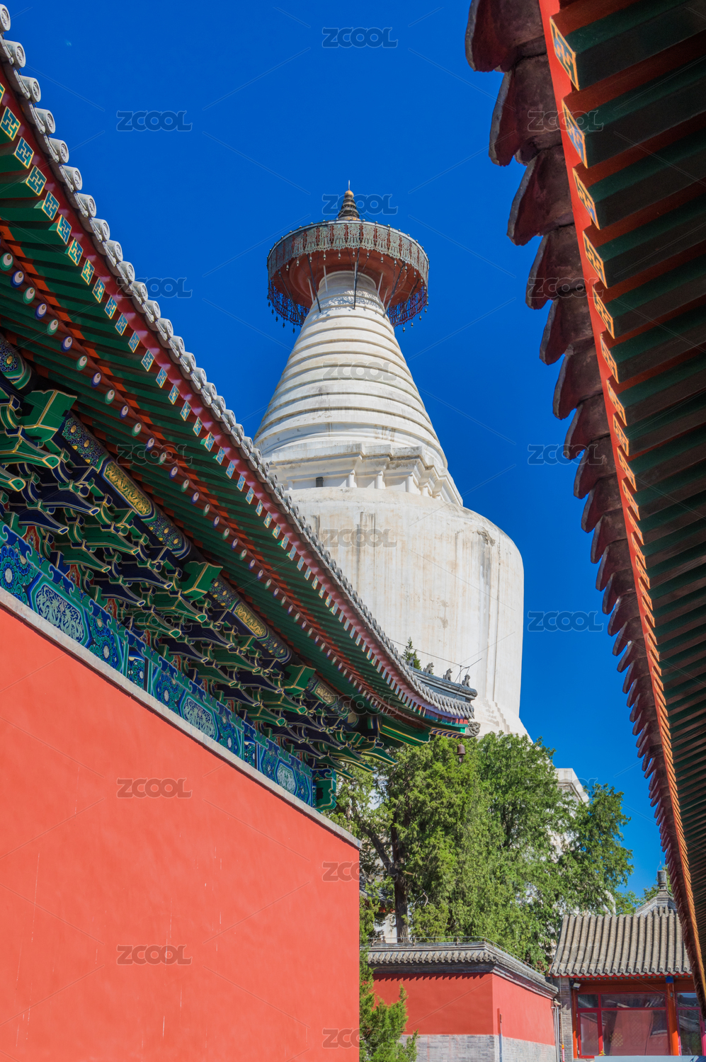 北京妙应白塔寺庙红墙古建筑历史文化胡同街