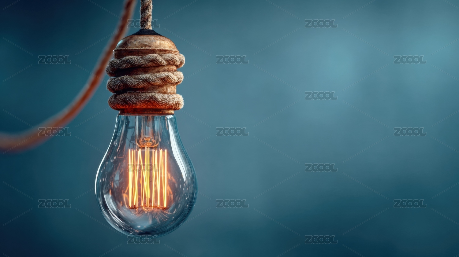 悬挂的透明灯泡发出温暖光芒