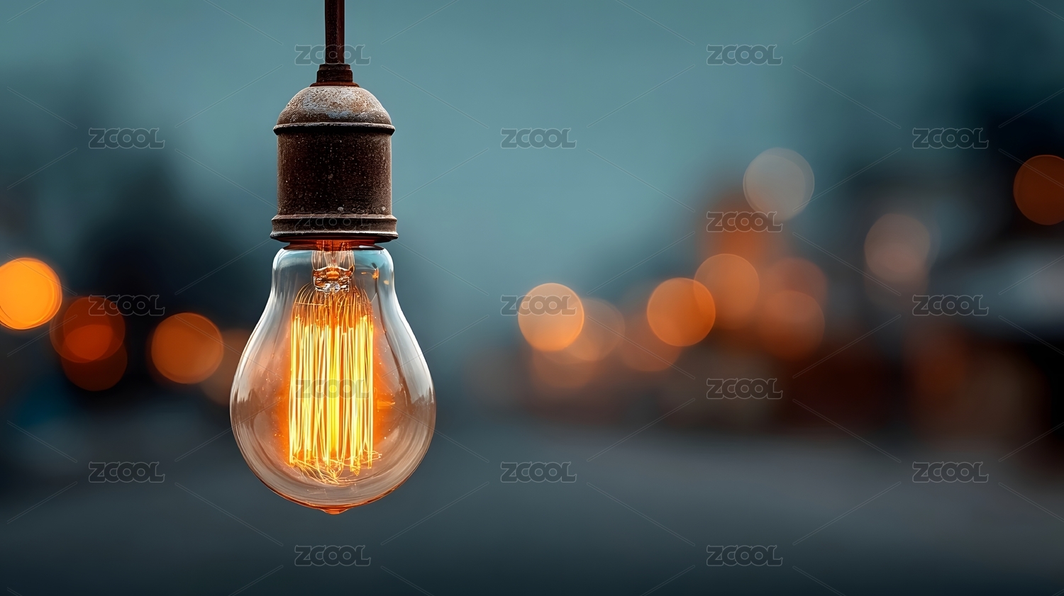 复古灯泡与城市夜景