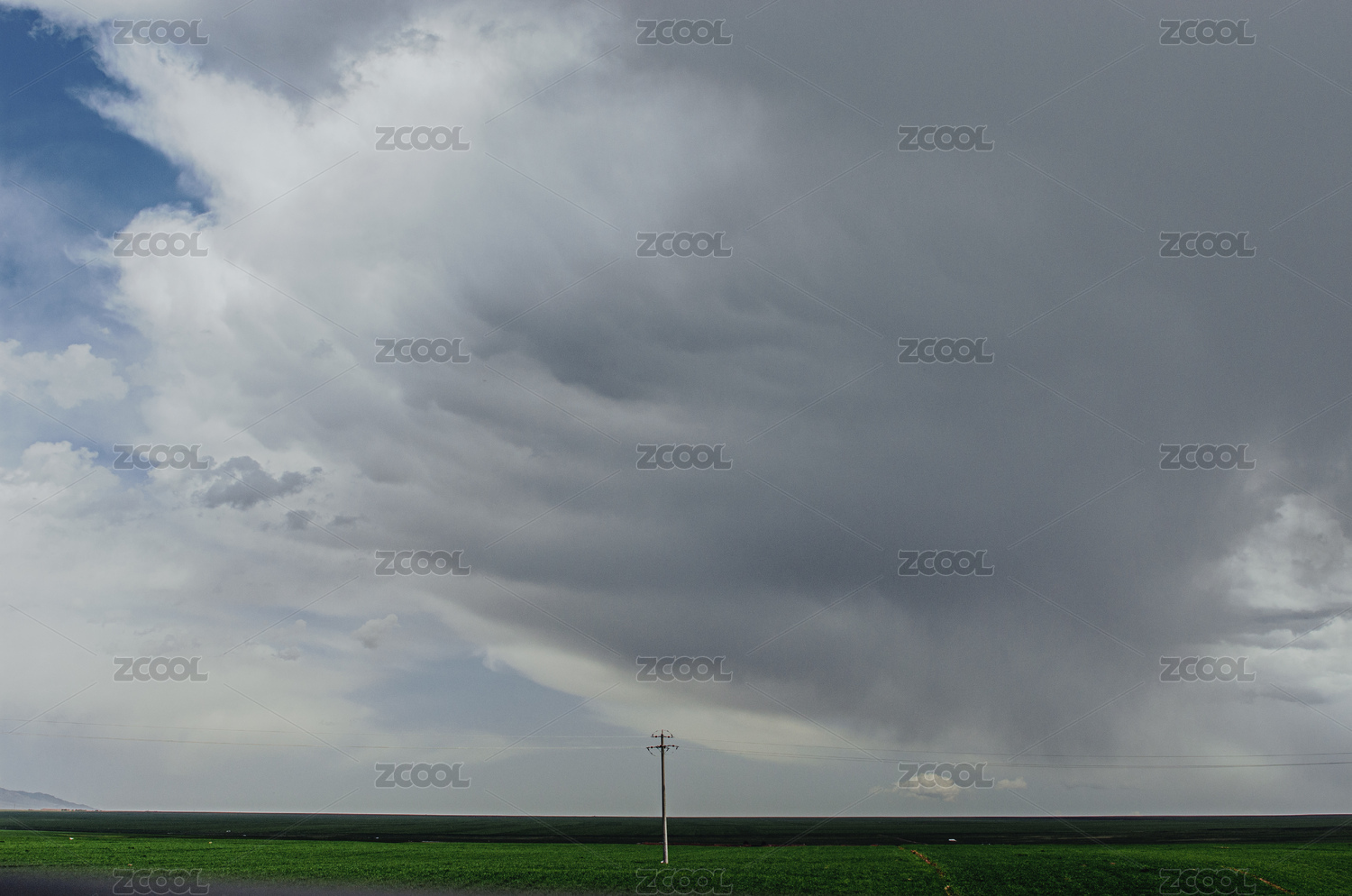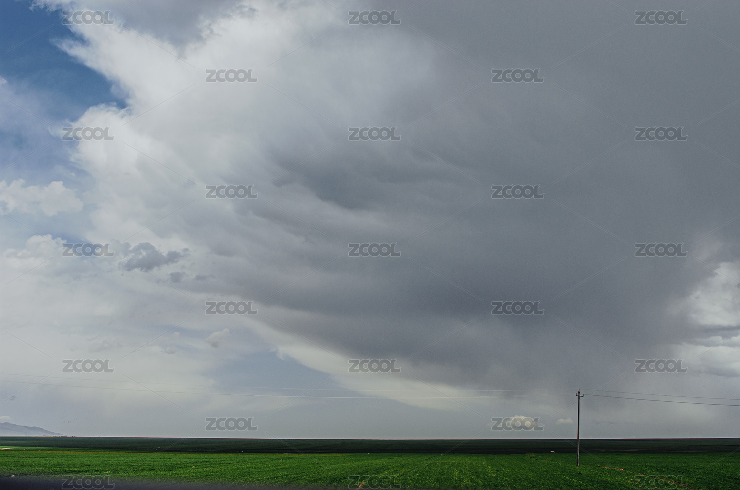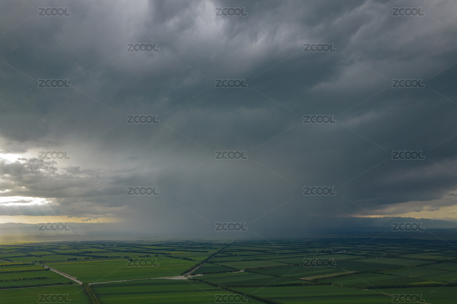中国新疆伊犁远处草原倾盆大雨草原气候