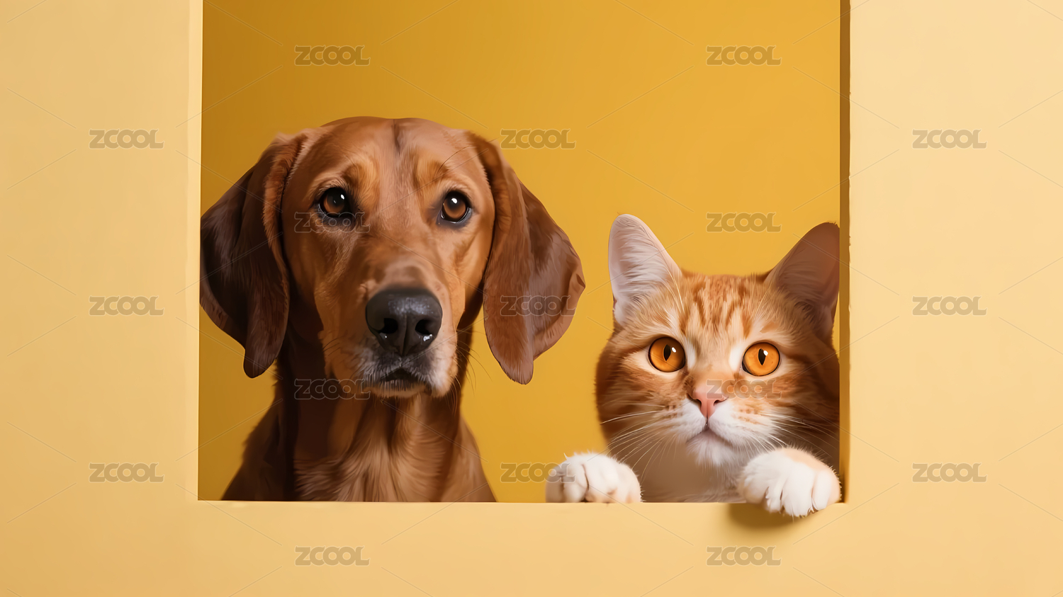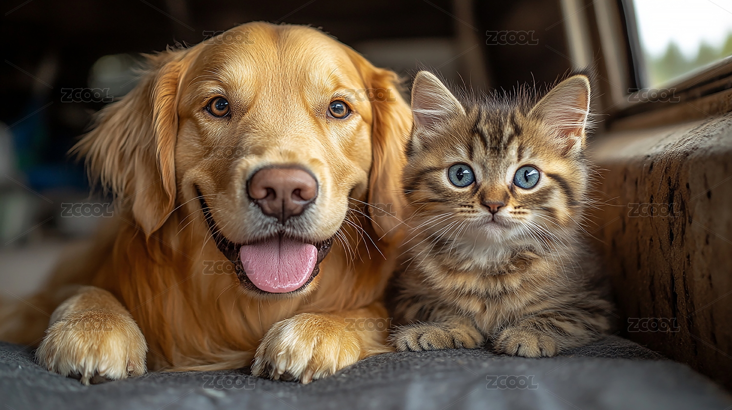 狗猫,依偎,秋叶,宠物,金毛,猫咪,温馨,阳光,自然,和谐