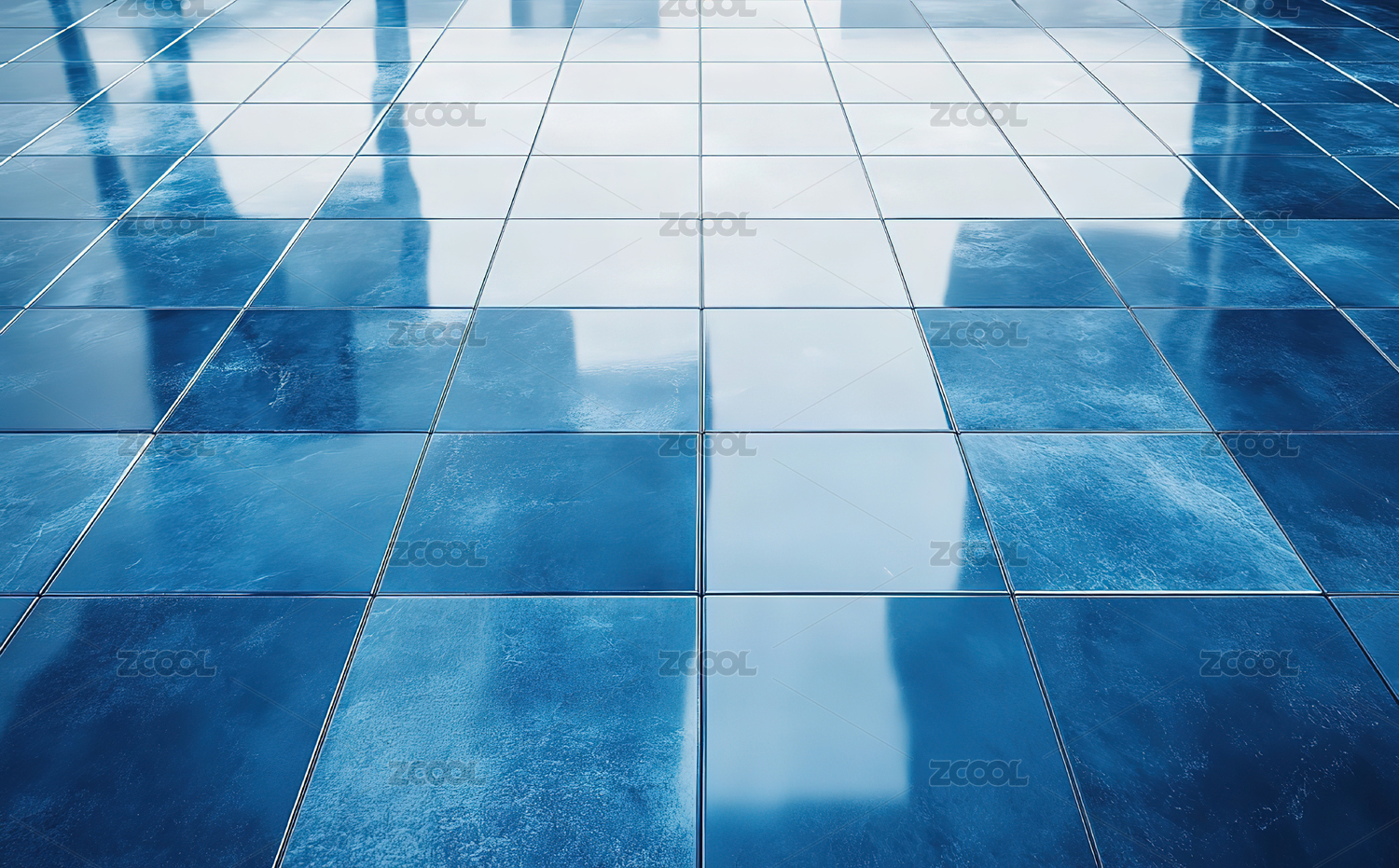 蓝色瓷砖地面反射