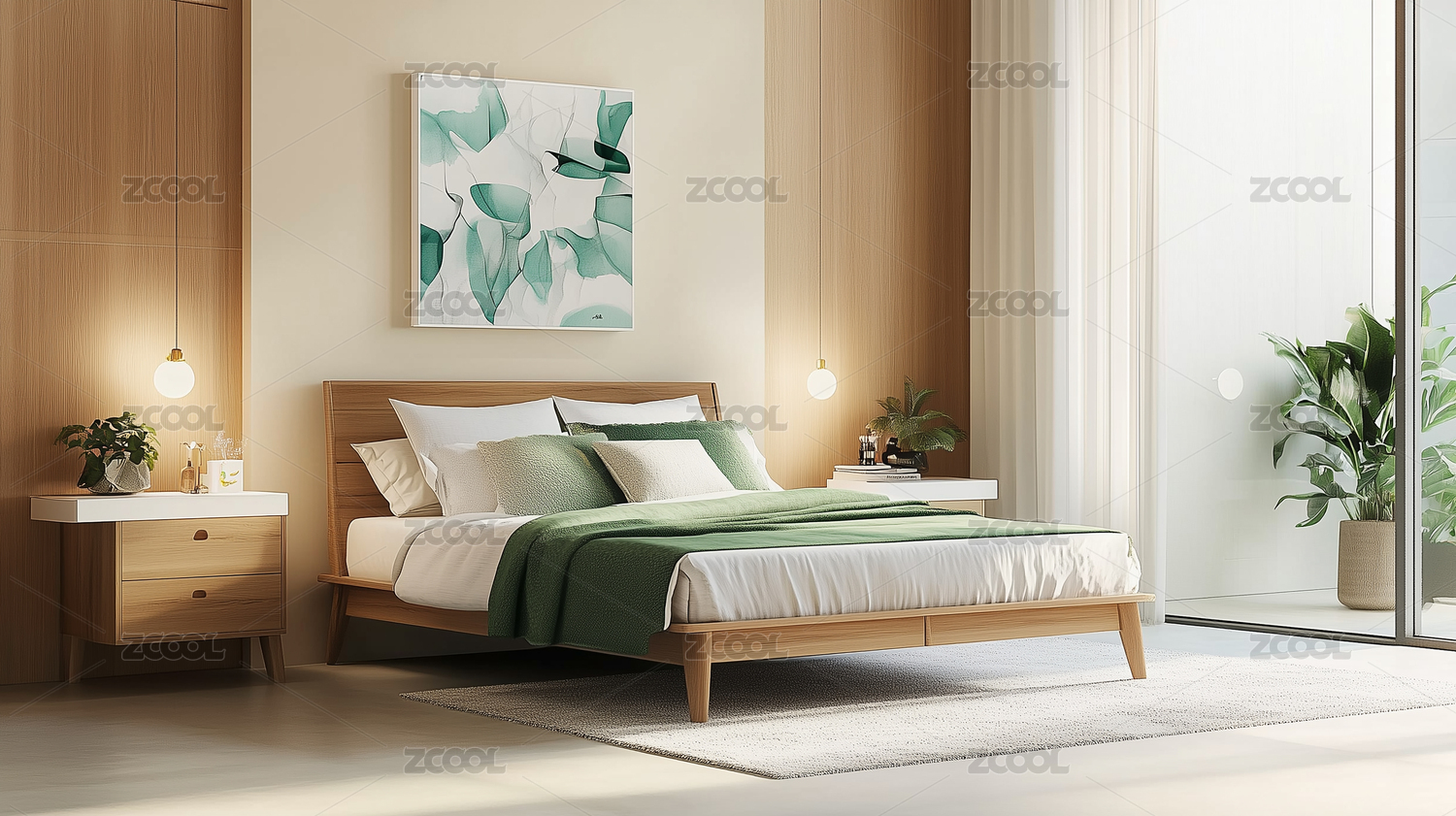 现代简约卧室木质家具与艺术装饰画营造宁静氛围