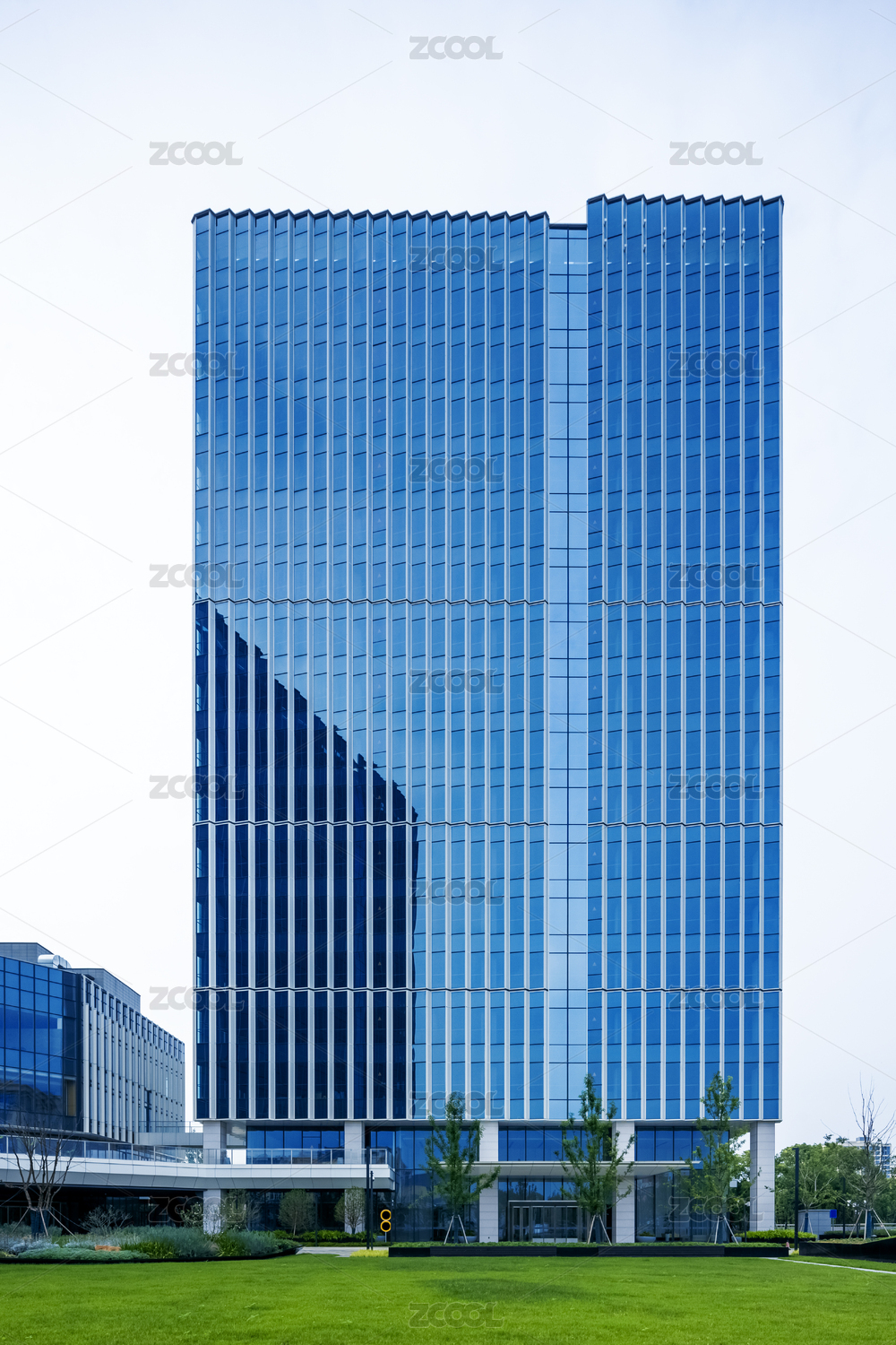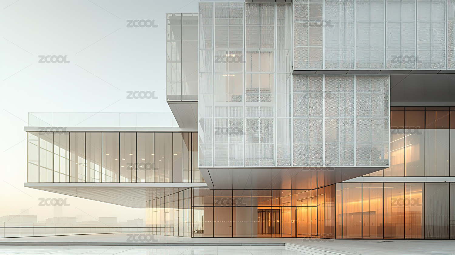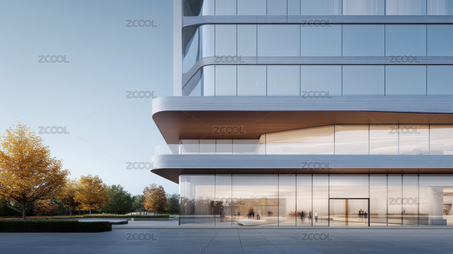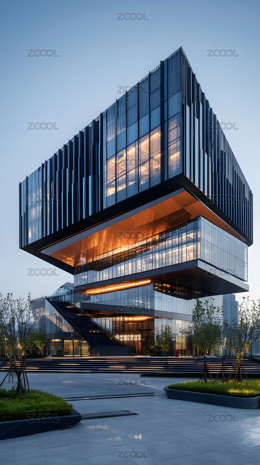 夜晚灯光照亮的现代玻璃幕墙大楼