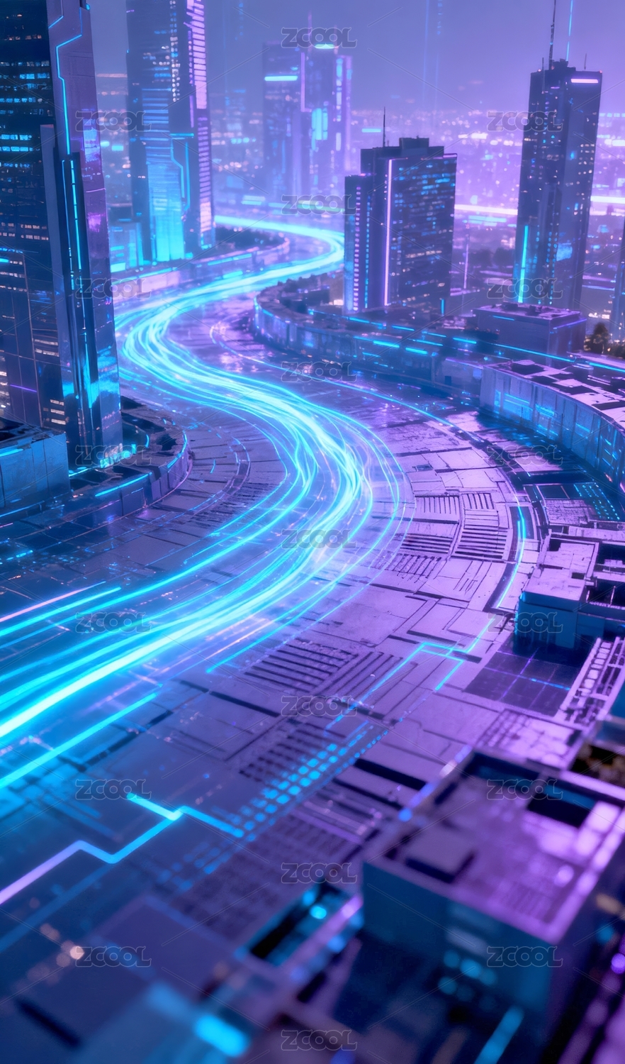 未来都市夜景高速公路环线