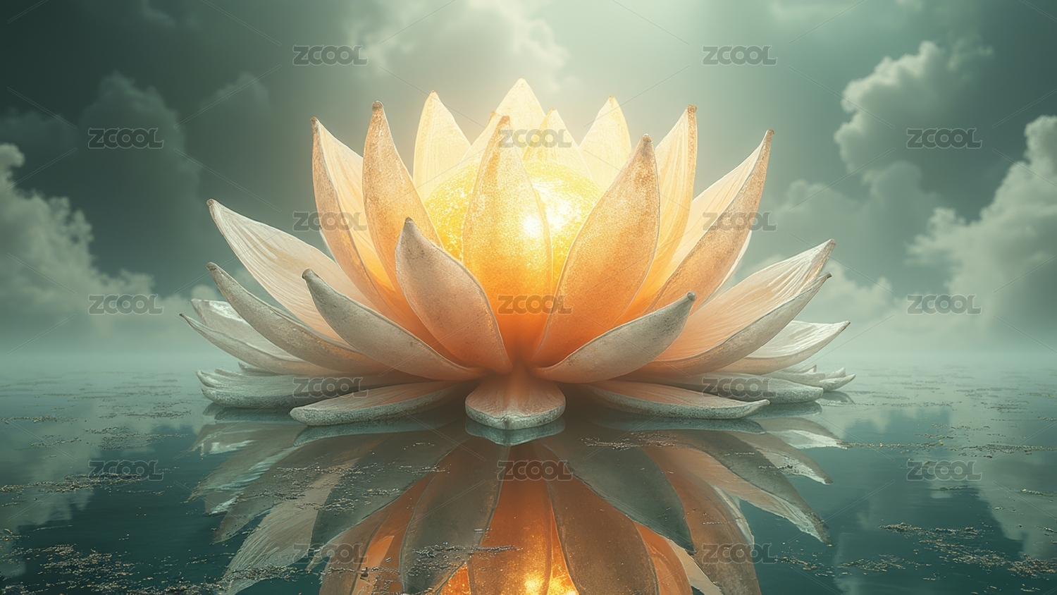 风景,自然,植物,插画,艺术,AIGC,花朵,莲花,玻璃,水面