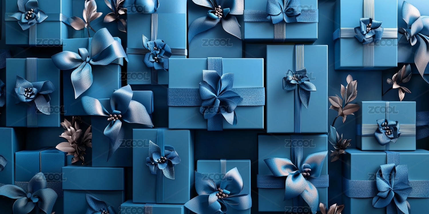 深蓝色礼物盒背景布置