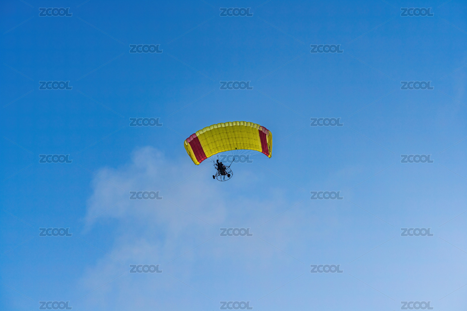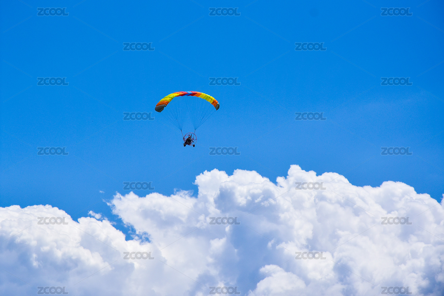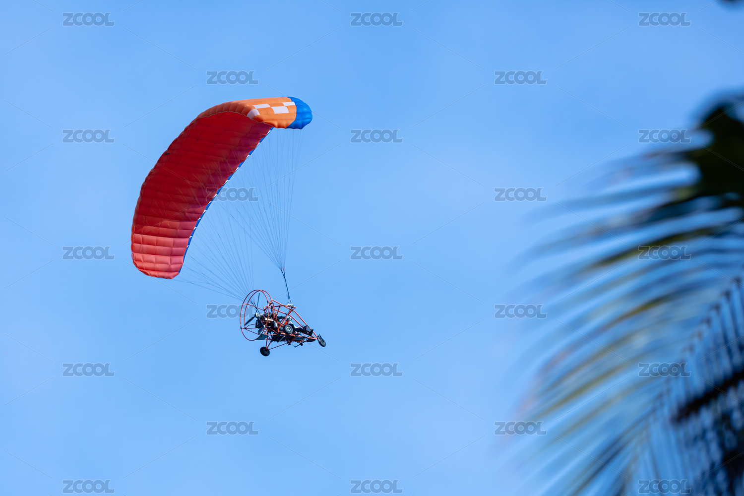 滑翔伞,动力滑翔,飞行,蓝天,白云,棕榈树,户外运动,天空,运动,蓝色