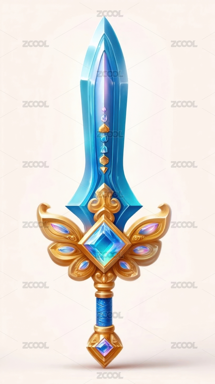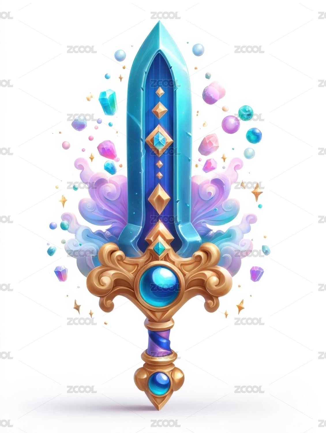黑底荧光色镶宝石魔法权杖3D卡通立体插画