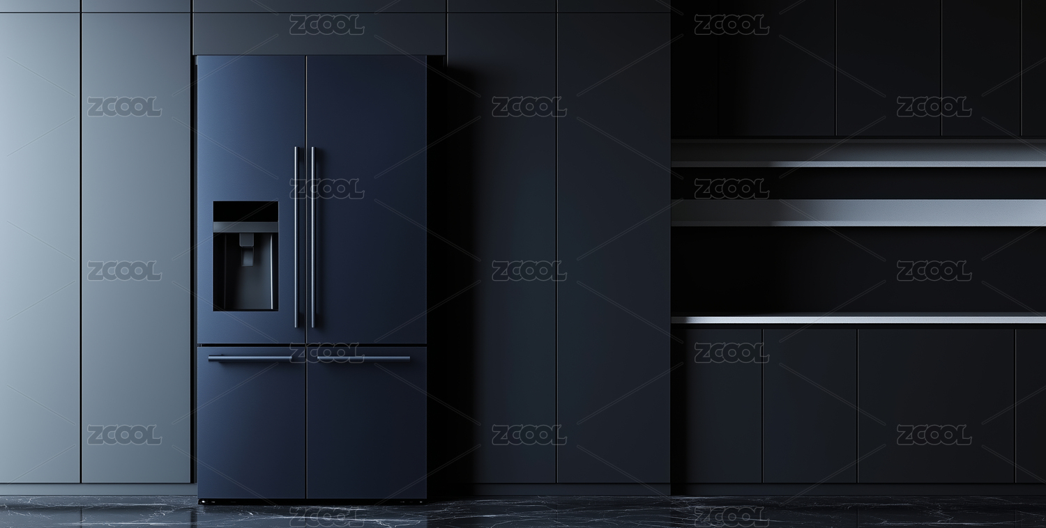现代厨房中的深色冰箱