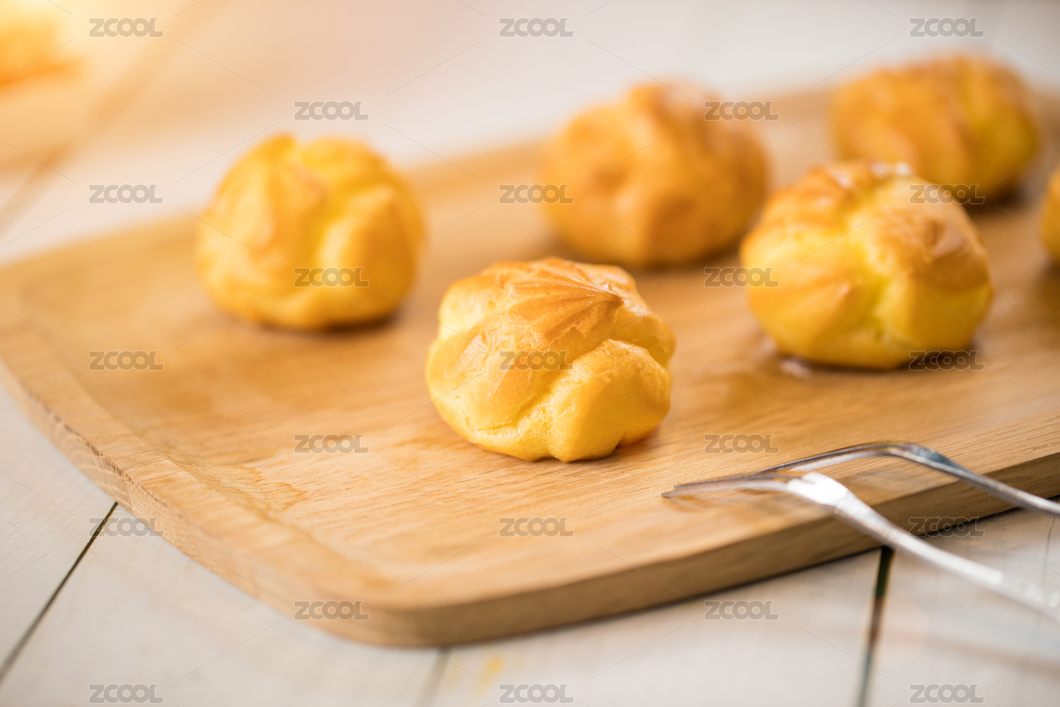 暗调下木质托盘里的泡芙