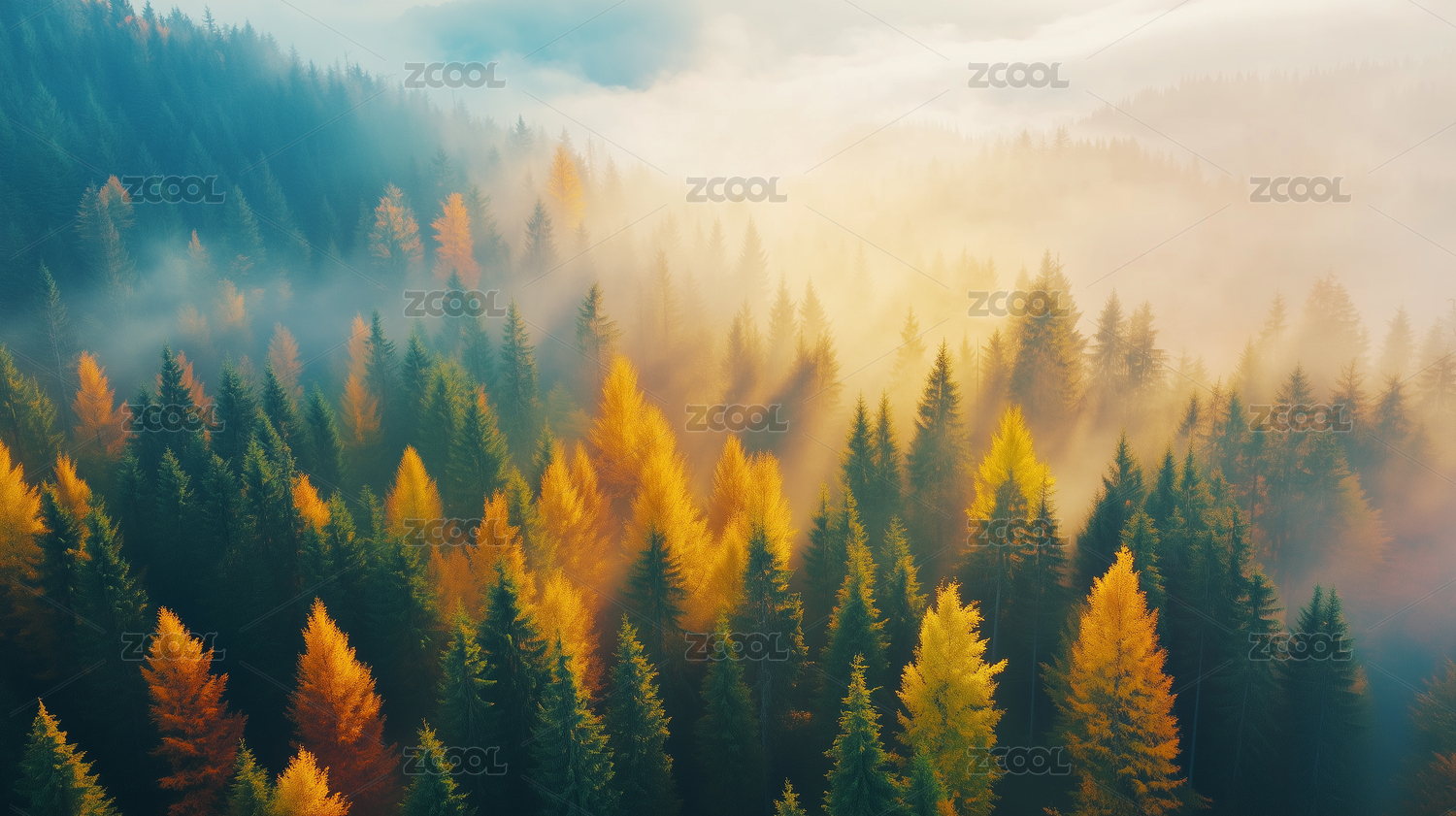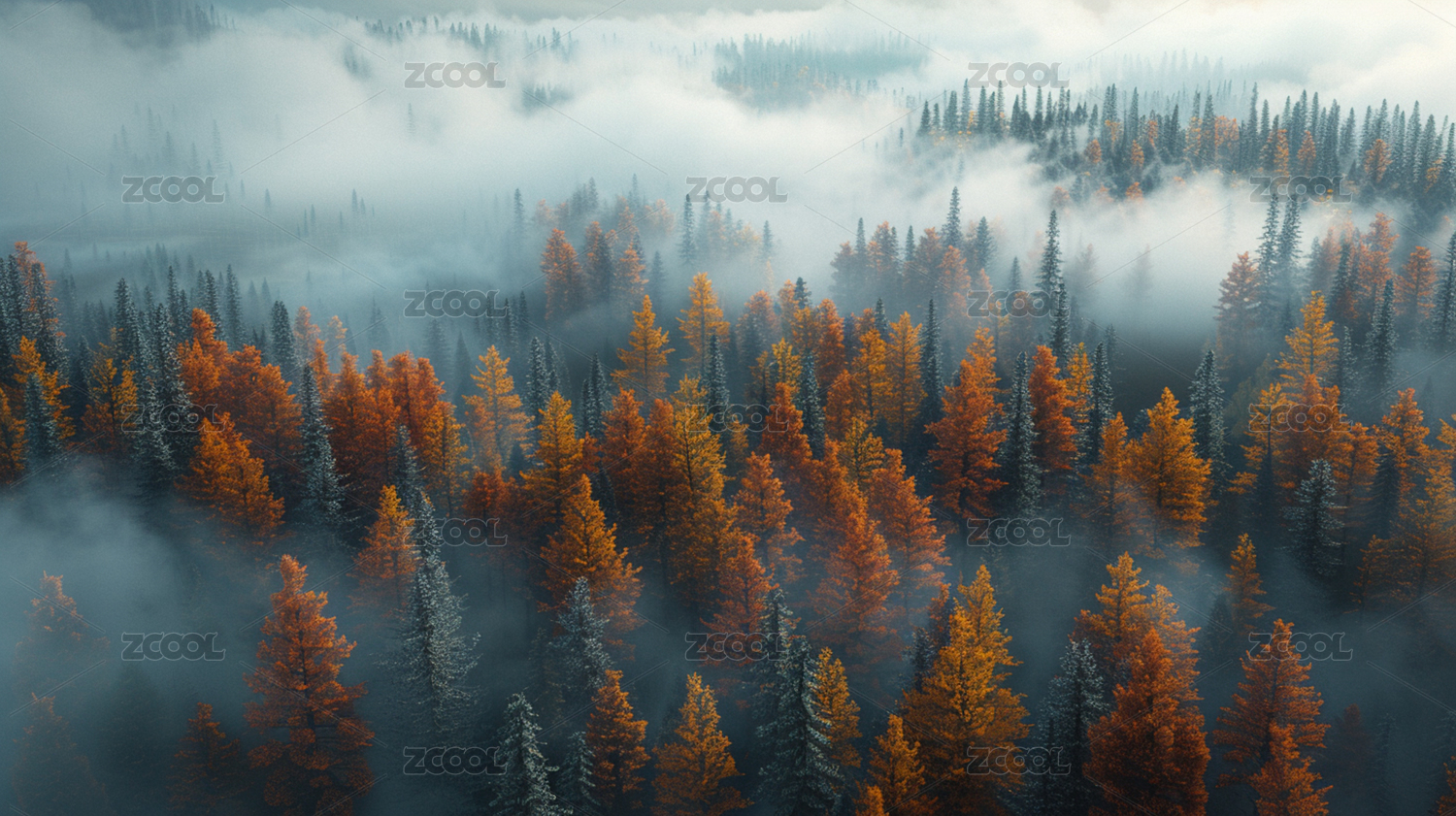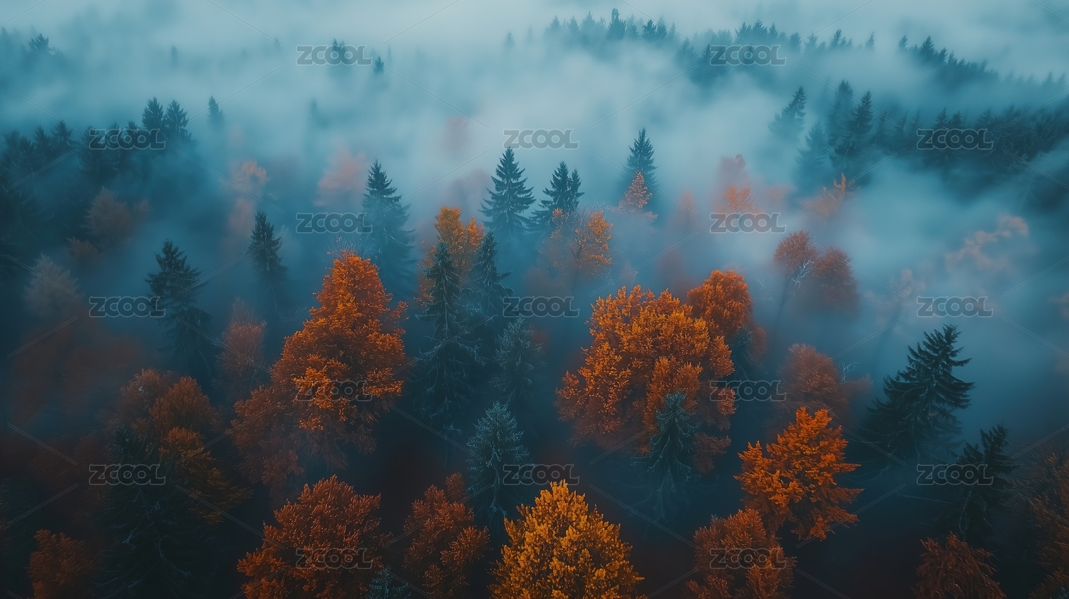 秋季,森林,树木,雾气,彩色,航拍,灰蓝色,树冠,薄雾,秋日