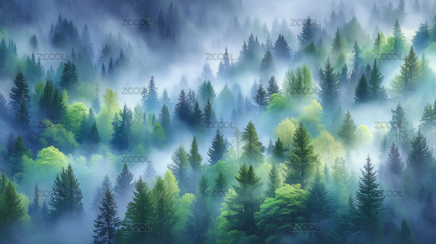 雨林森林日出日落雾气唯美AI数字艺术创意