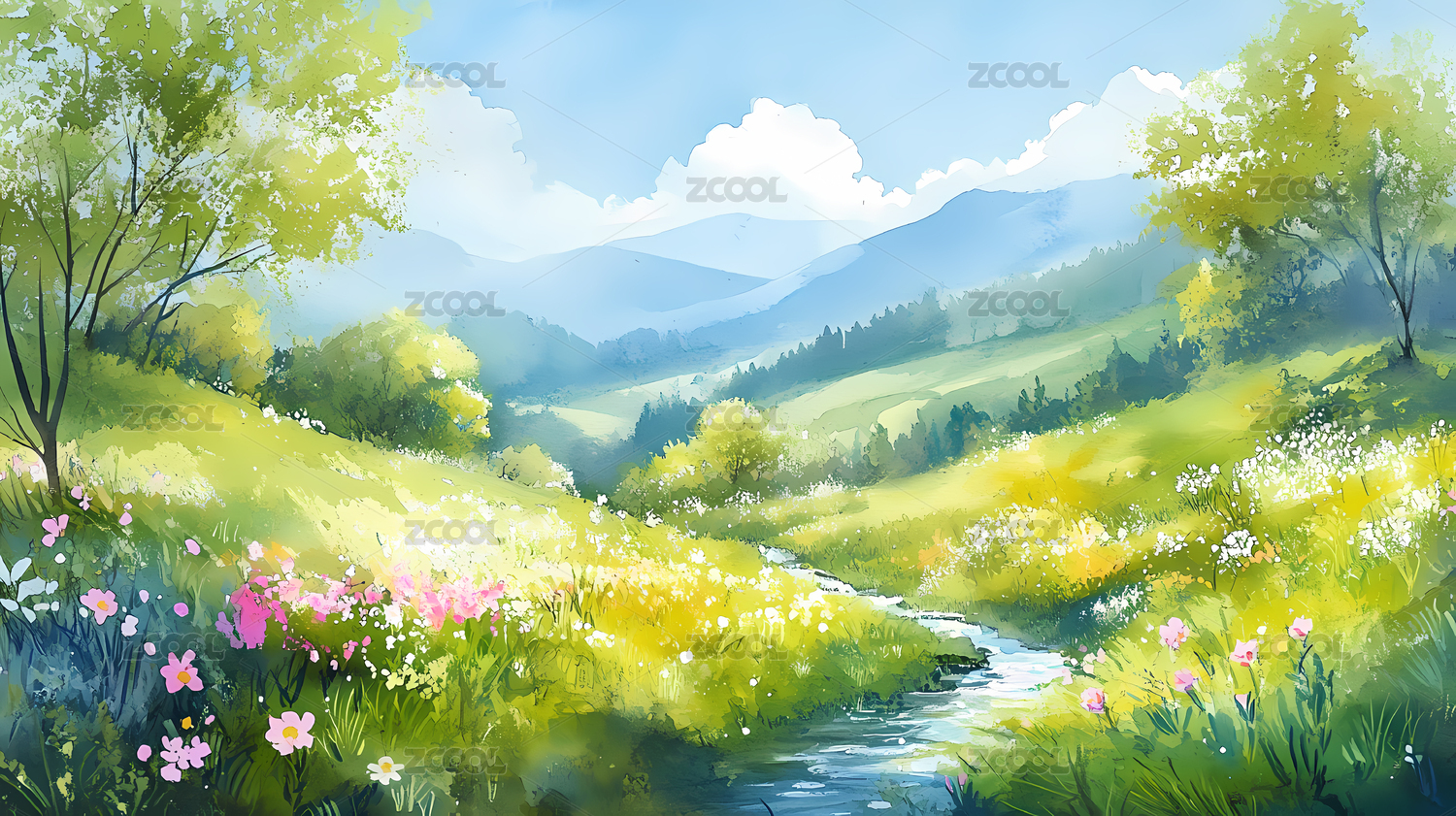 春季水彩风光插画