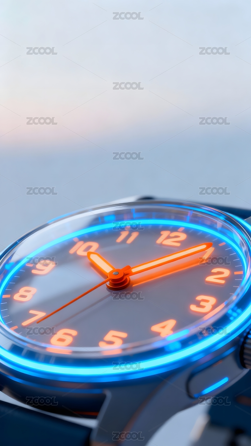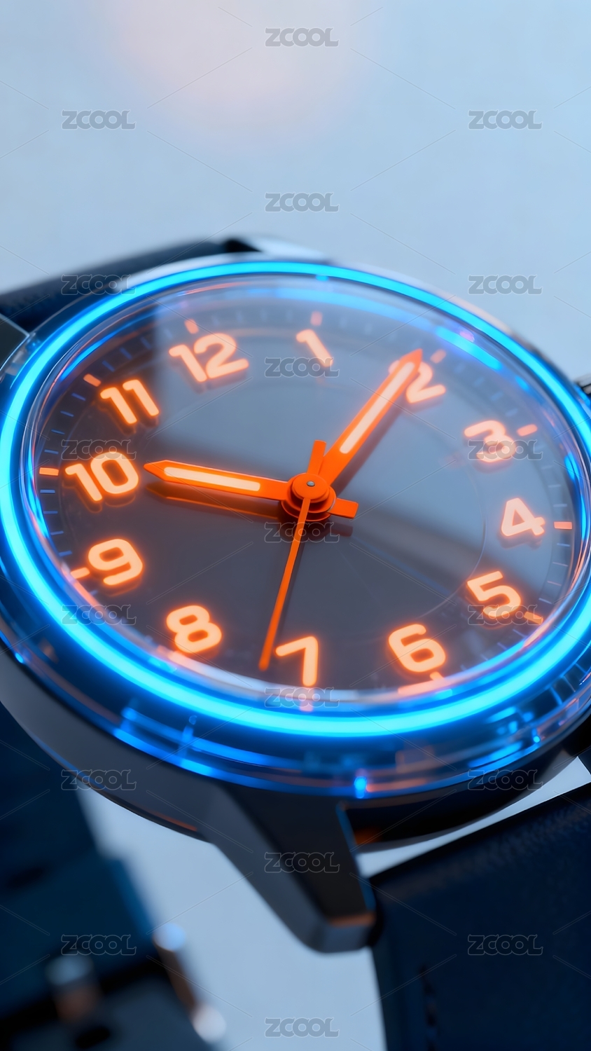 霓虹光效腕表特写展现时间艺术