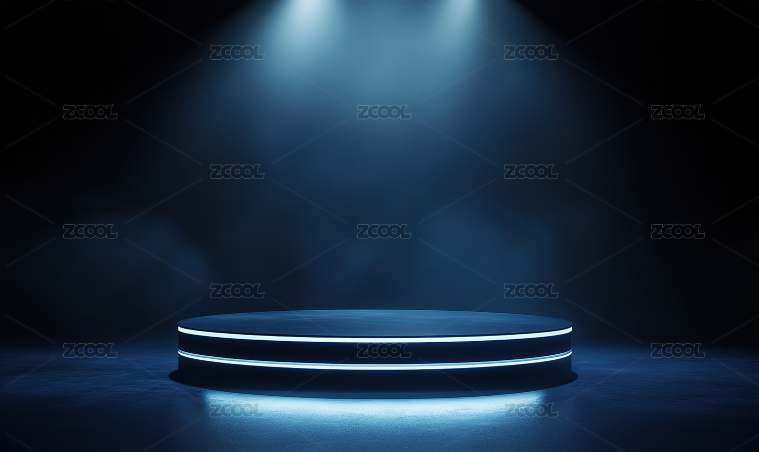 蓝色舞台灯光下的圆形展台
