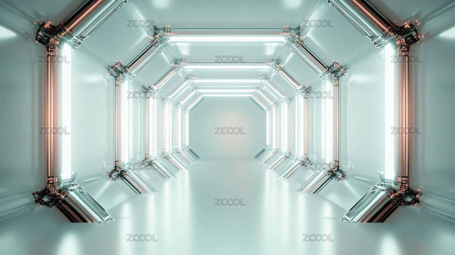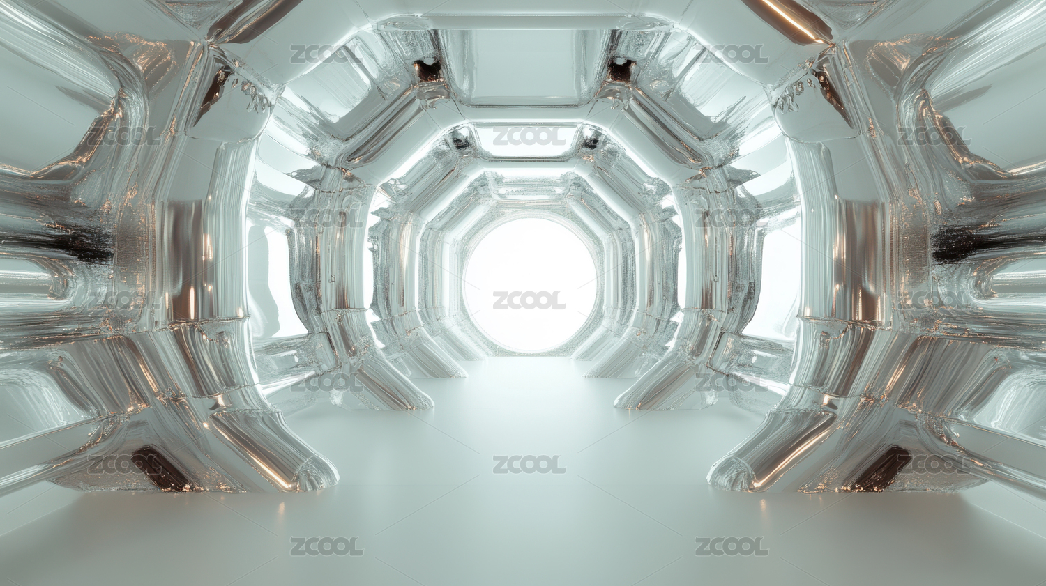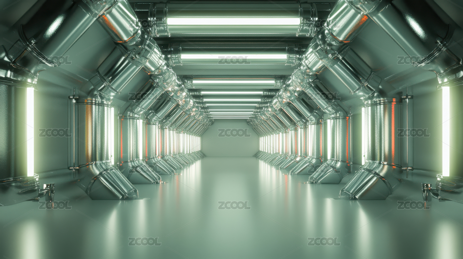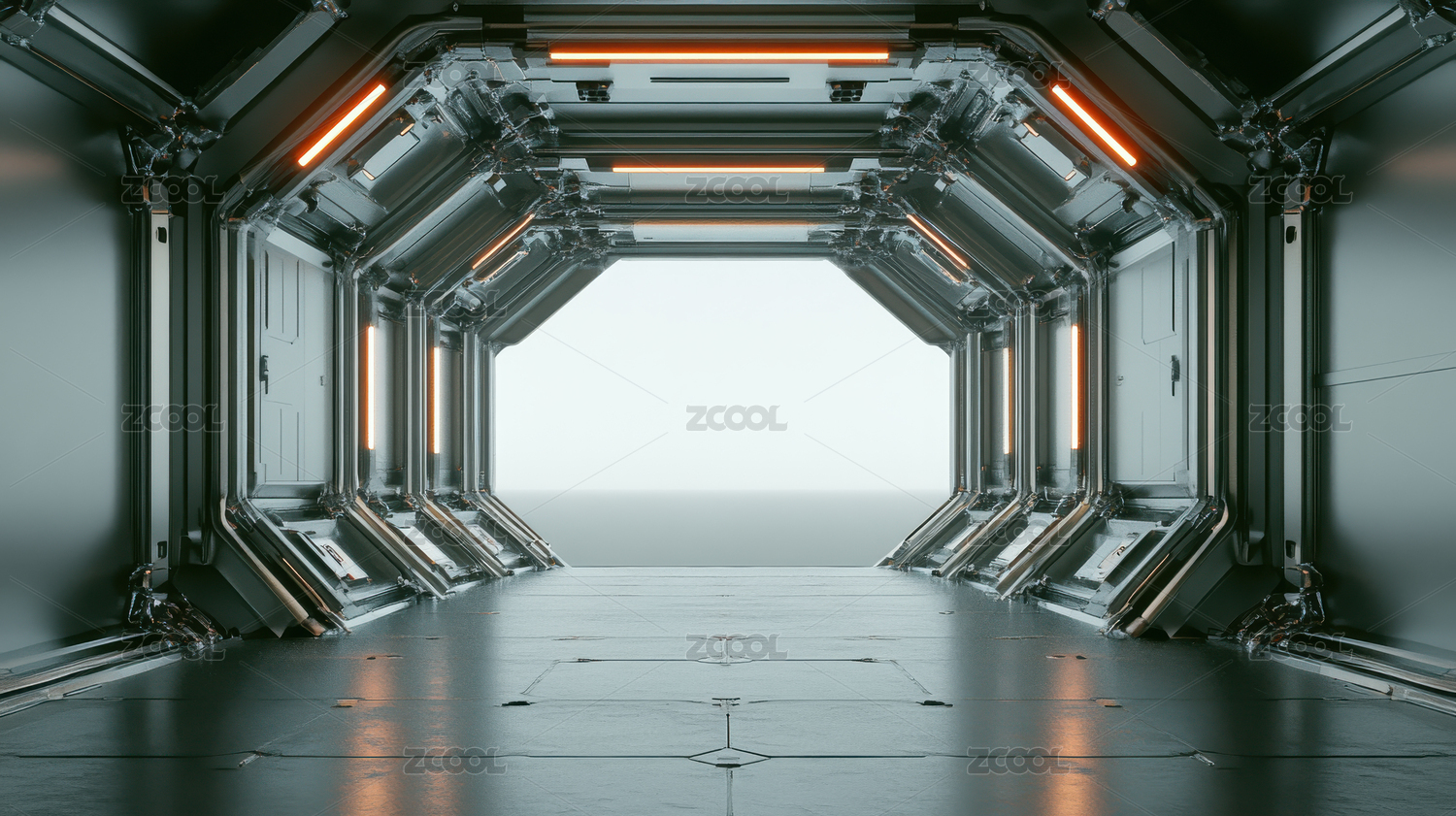 未来, 科幻, 金属, 反射, 技术, 空间站, 走廊, 现代, 设计, 建筑