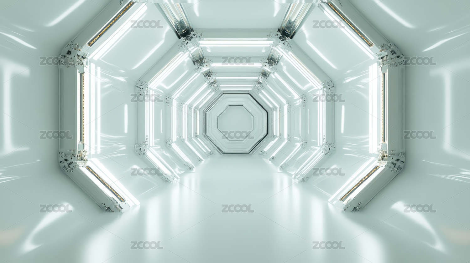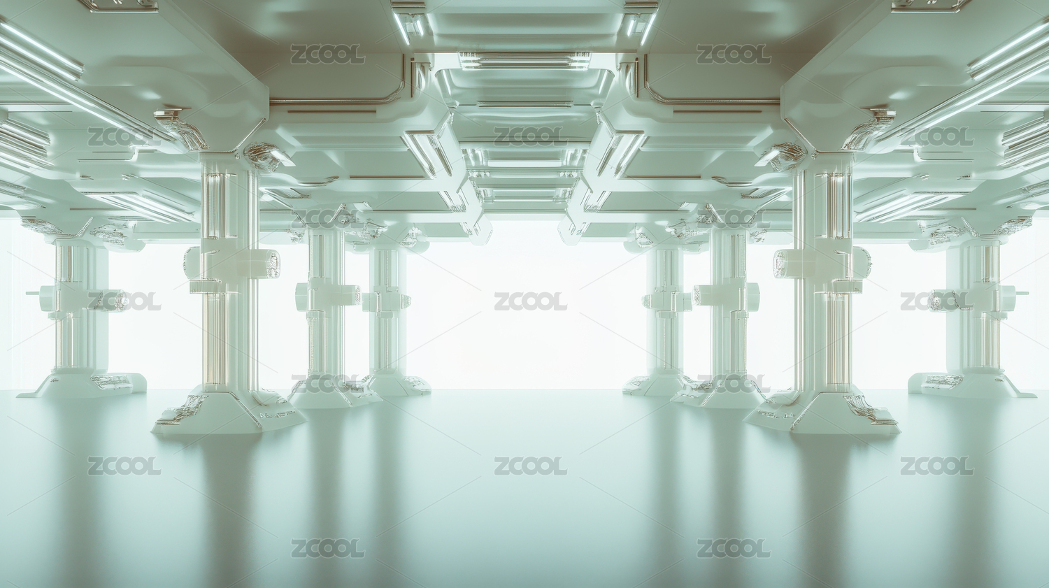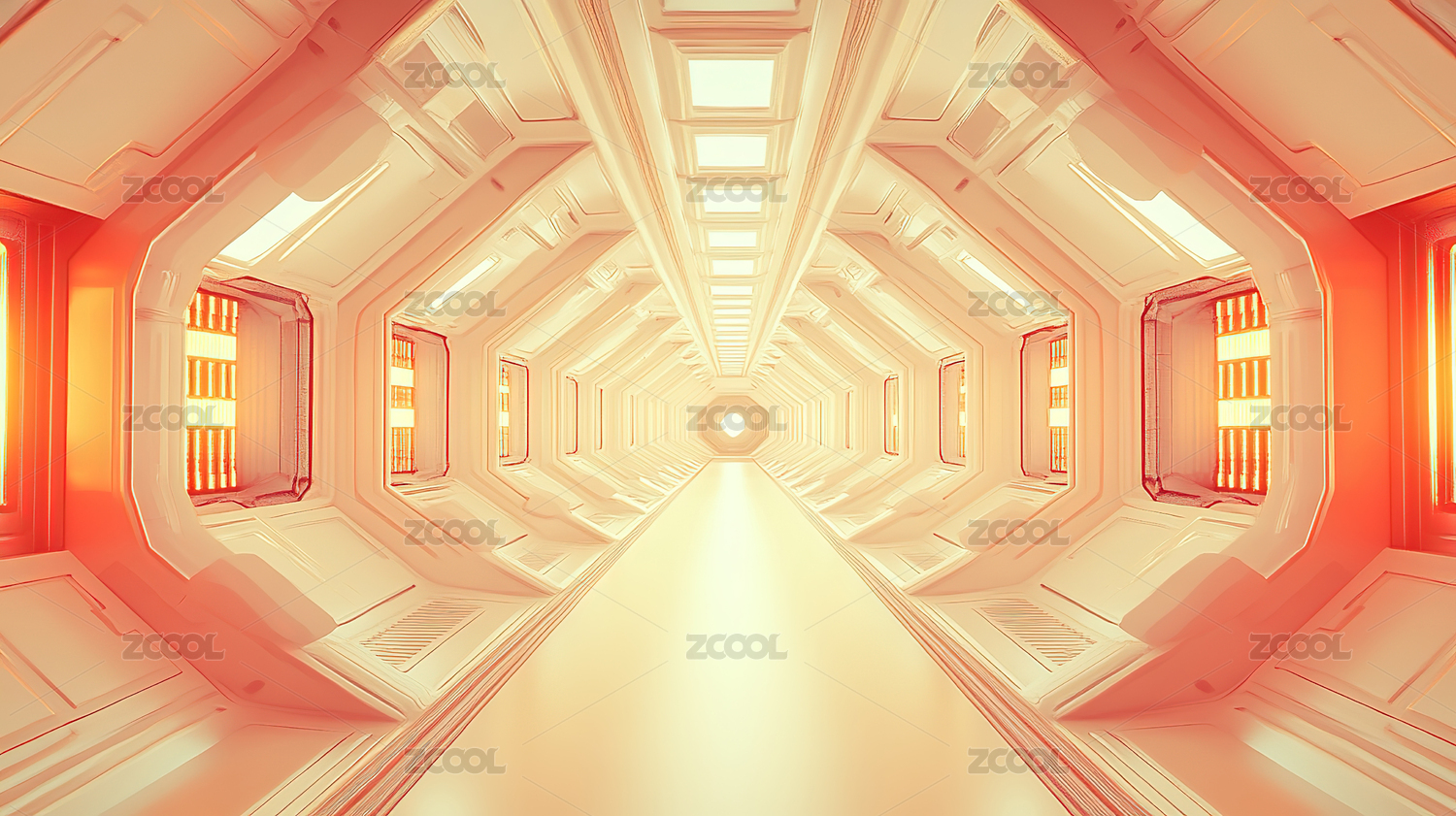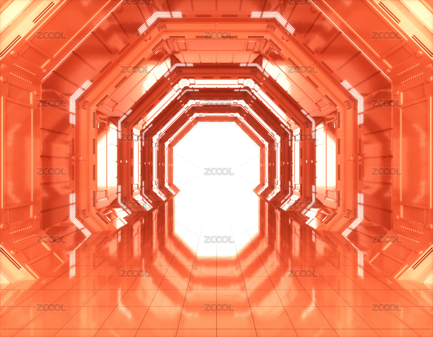 未来, 科幻, 金属, 反射, 技术, 空间站, 走廊, 现代, 设计, 建筑