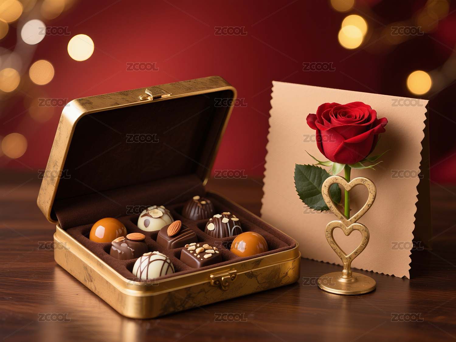 粉缎背景礼盒巧克力玫瑰浪漫摆拍