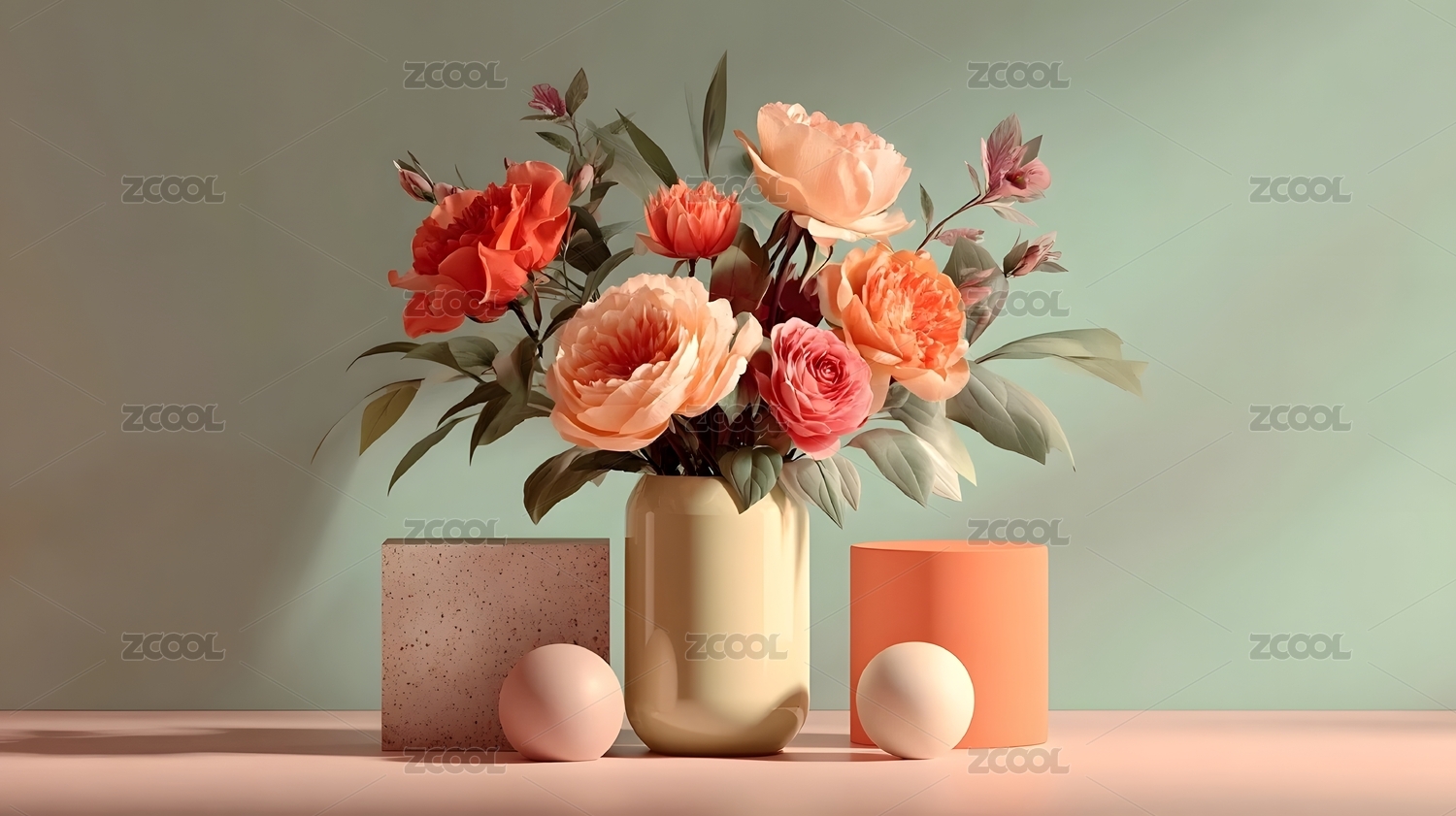 静物花瓶与花卉组合