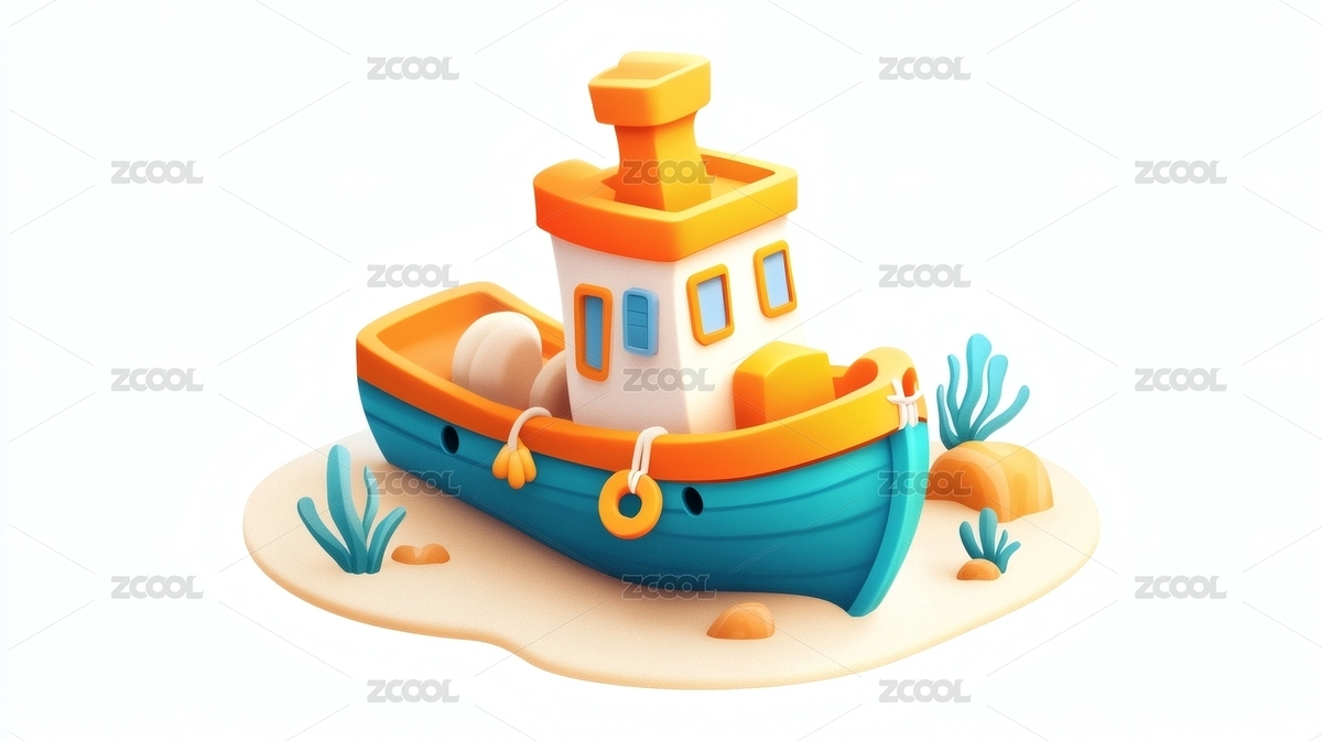 小船,航行,海洋,卡通,橙色,白色,蓝色,可爱,童趣,3D
