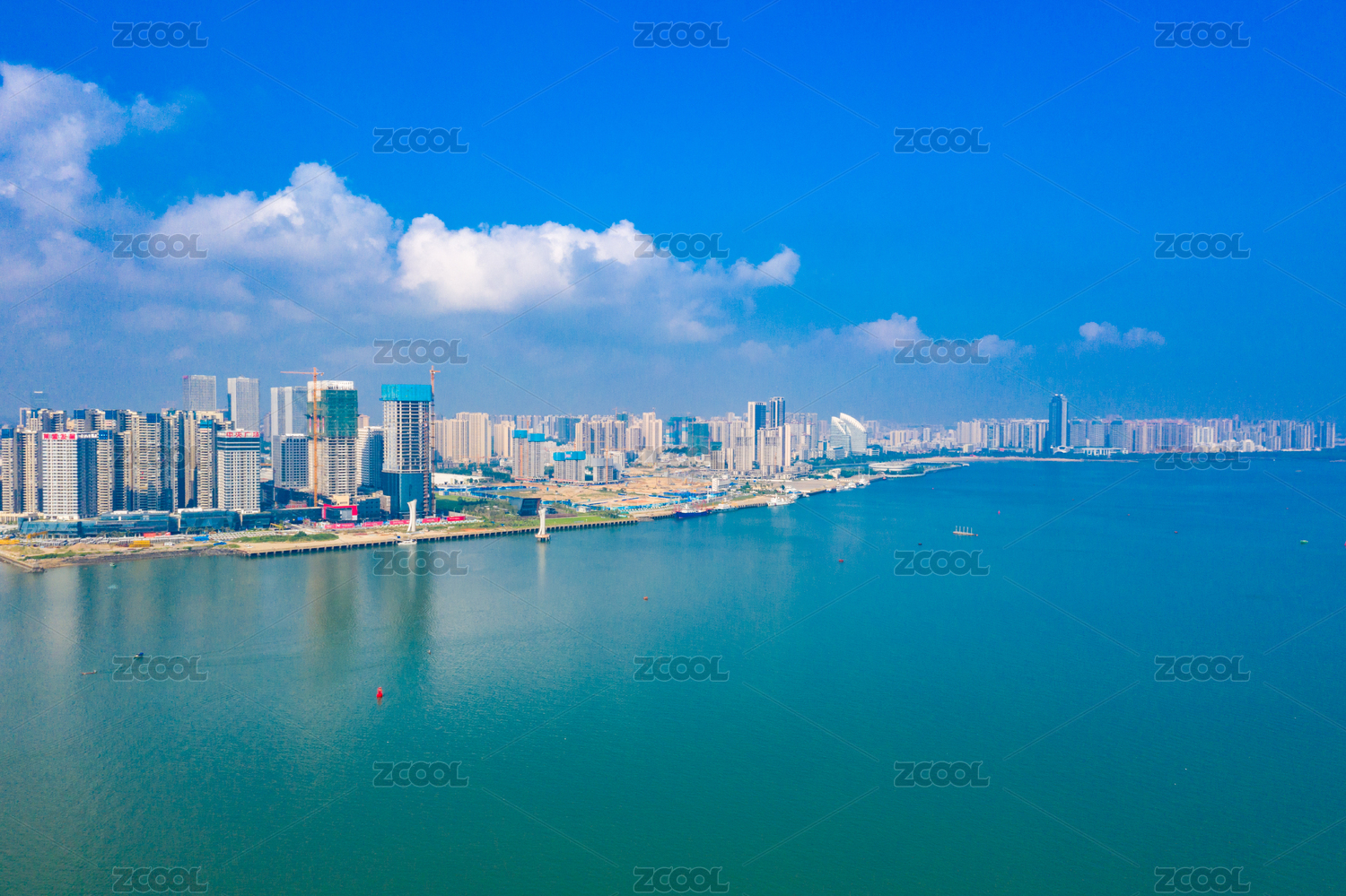 中国海南省海口市海甸岛海滨航拍图