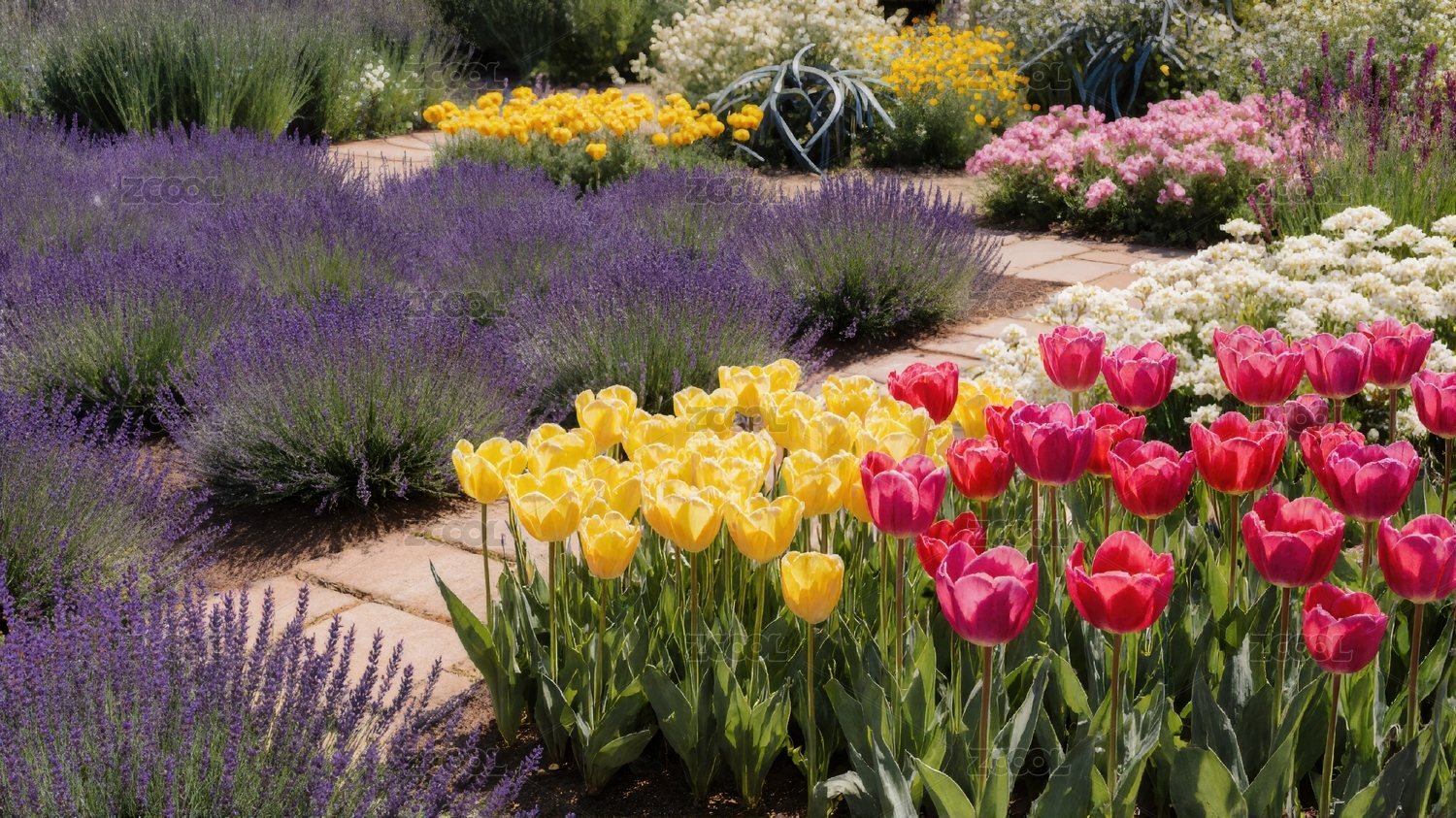 中国云南昆明捞鱼河湿地公园里盛开的郁金香