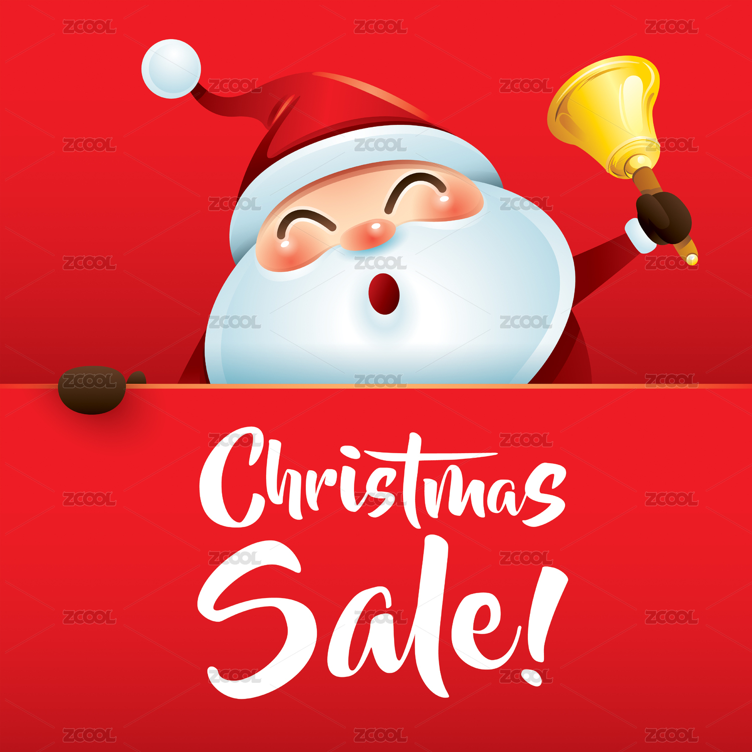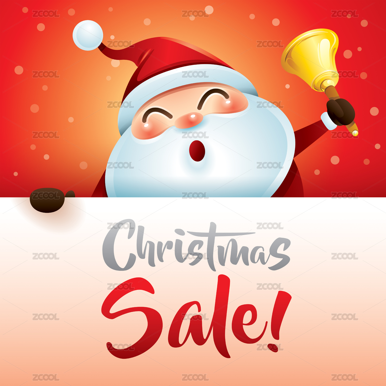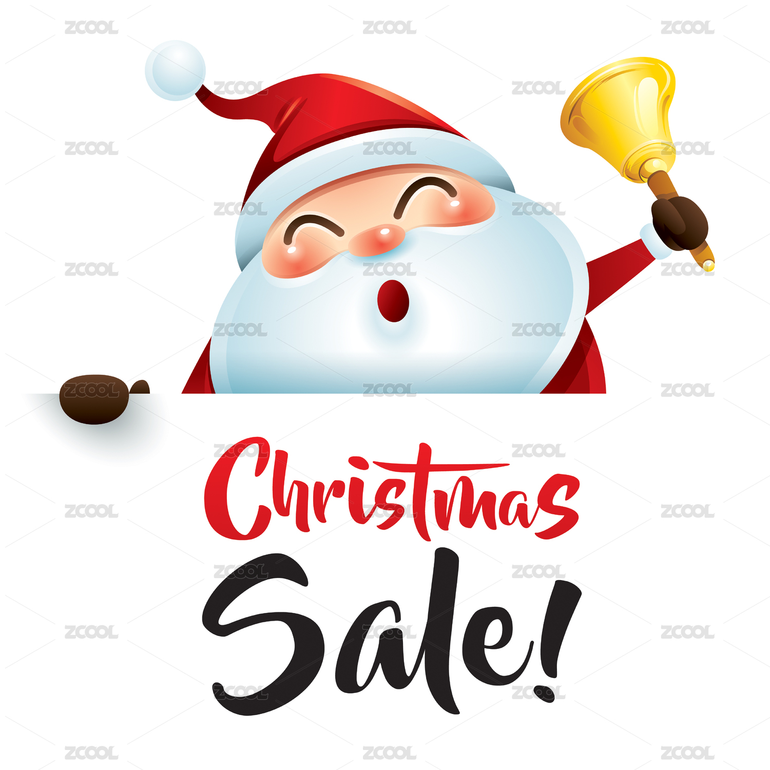 圣诞促销!圣诞老人与叮铃铃和大招牌。