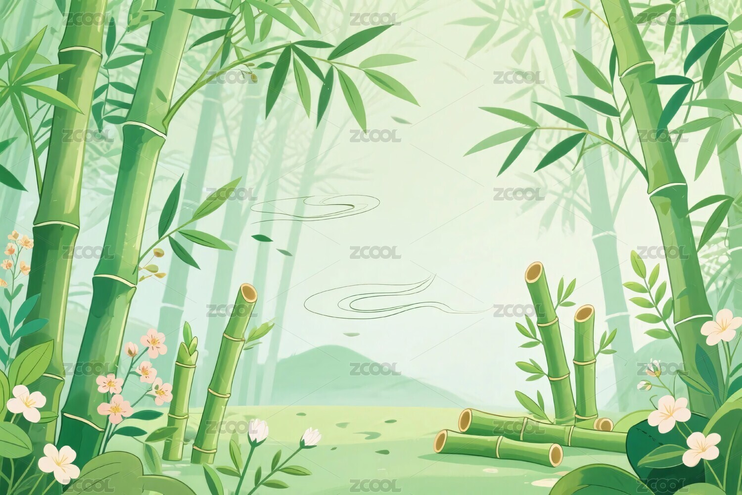 清新竹林插画