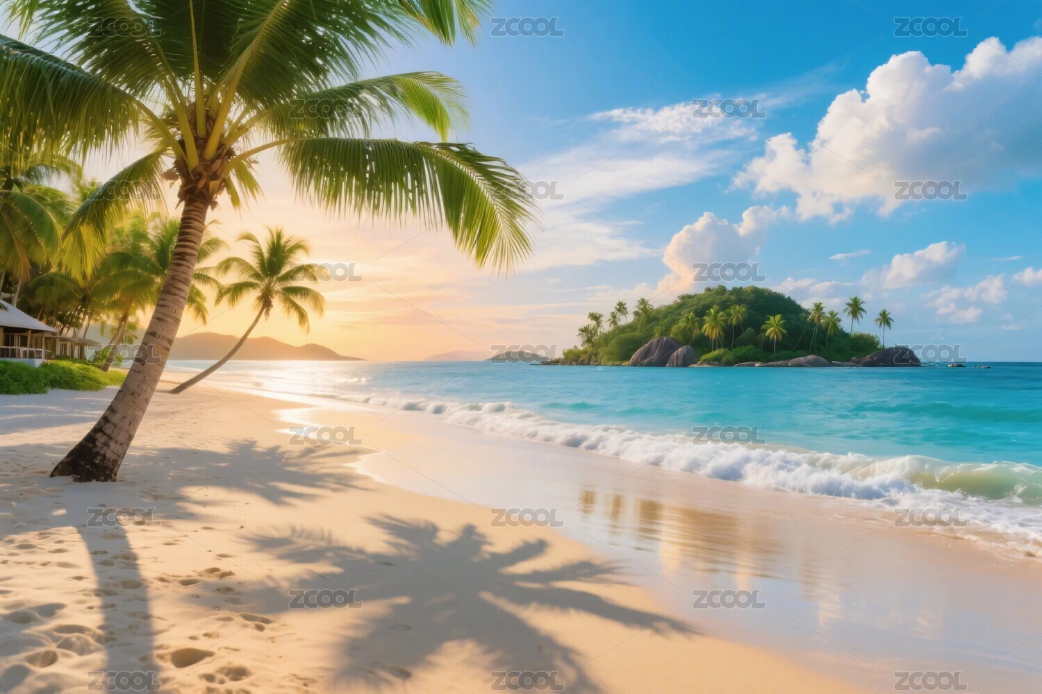 海滩,海水,蓝天,白云,椰子树,沙滩,海景,海洋,旅行,自然