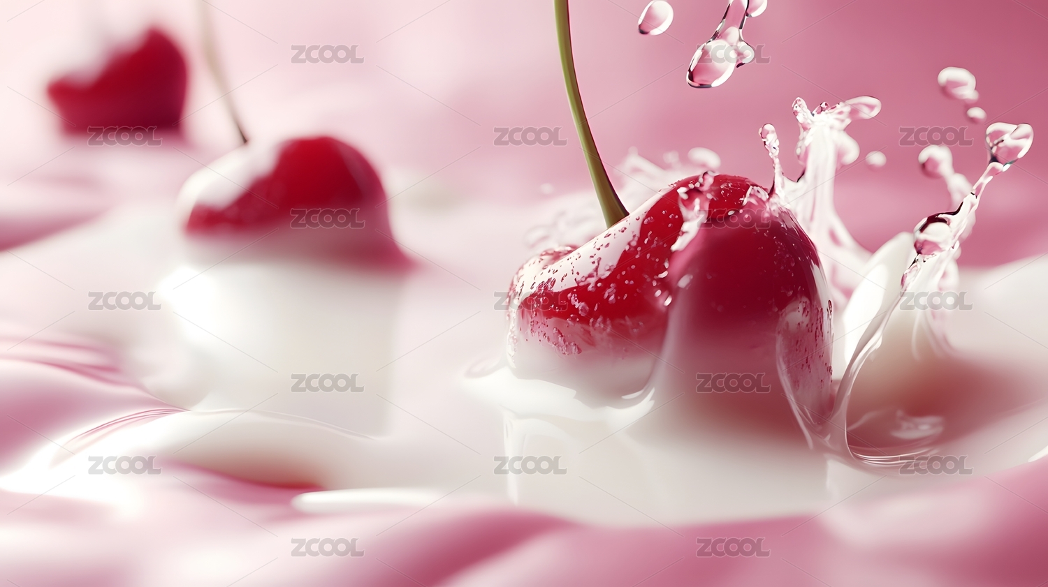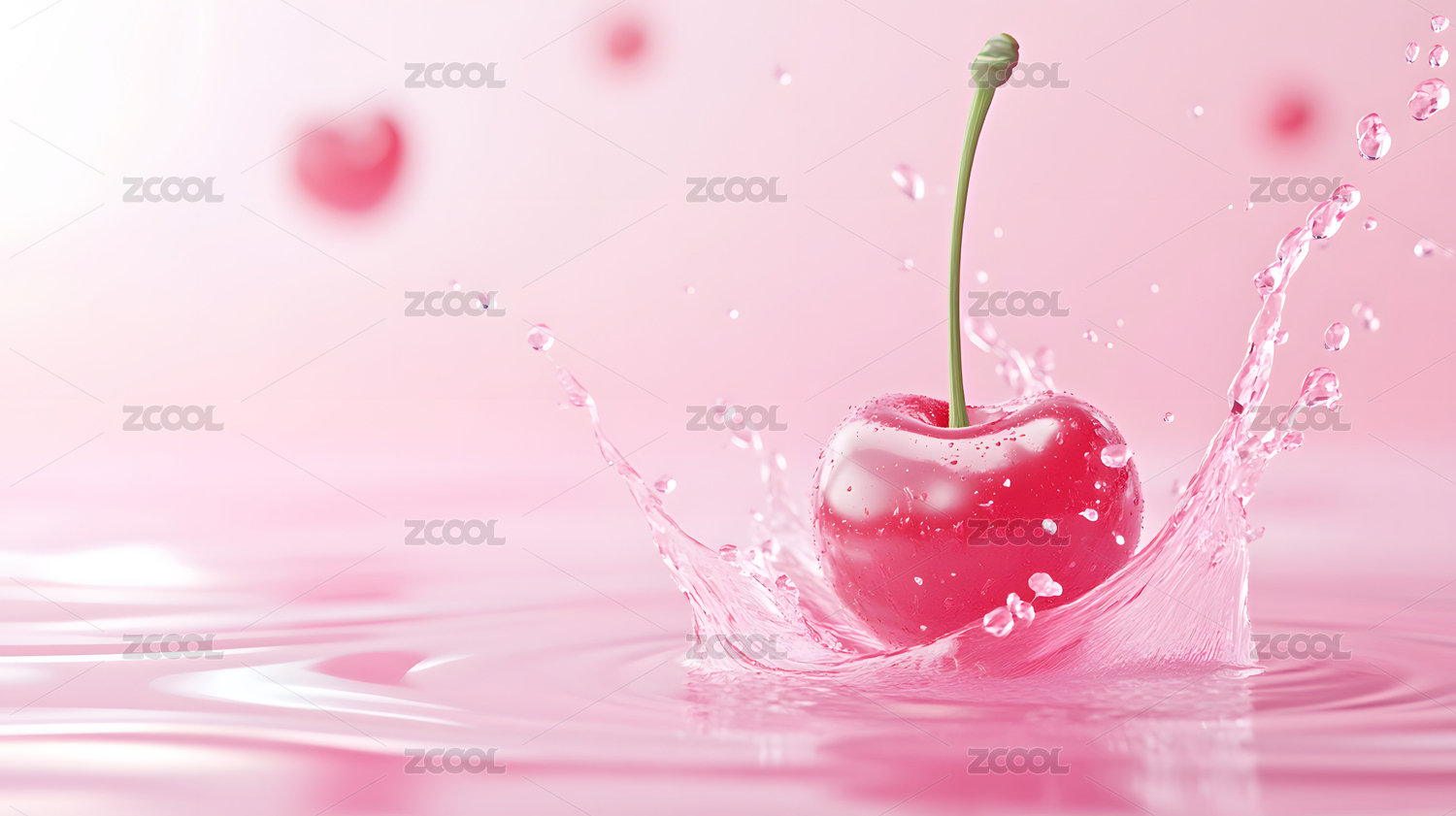 樱桃落入粉色液体溅起水花