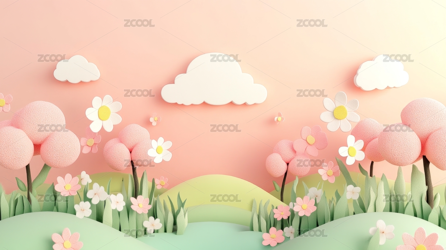 草地,柔和,清新,造型,色彩,背景,花朵,山丘,云朵,蓝天