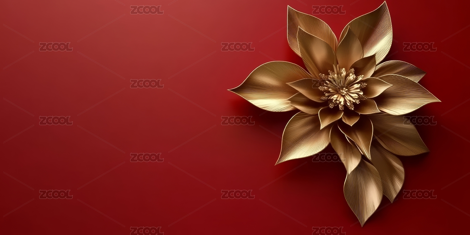 红色,背景,简洁,立体,质感,花朵,金色,装饰,优雅,金属