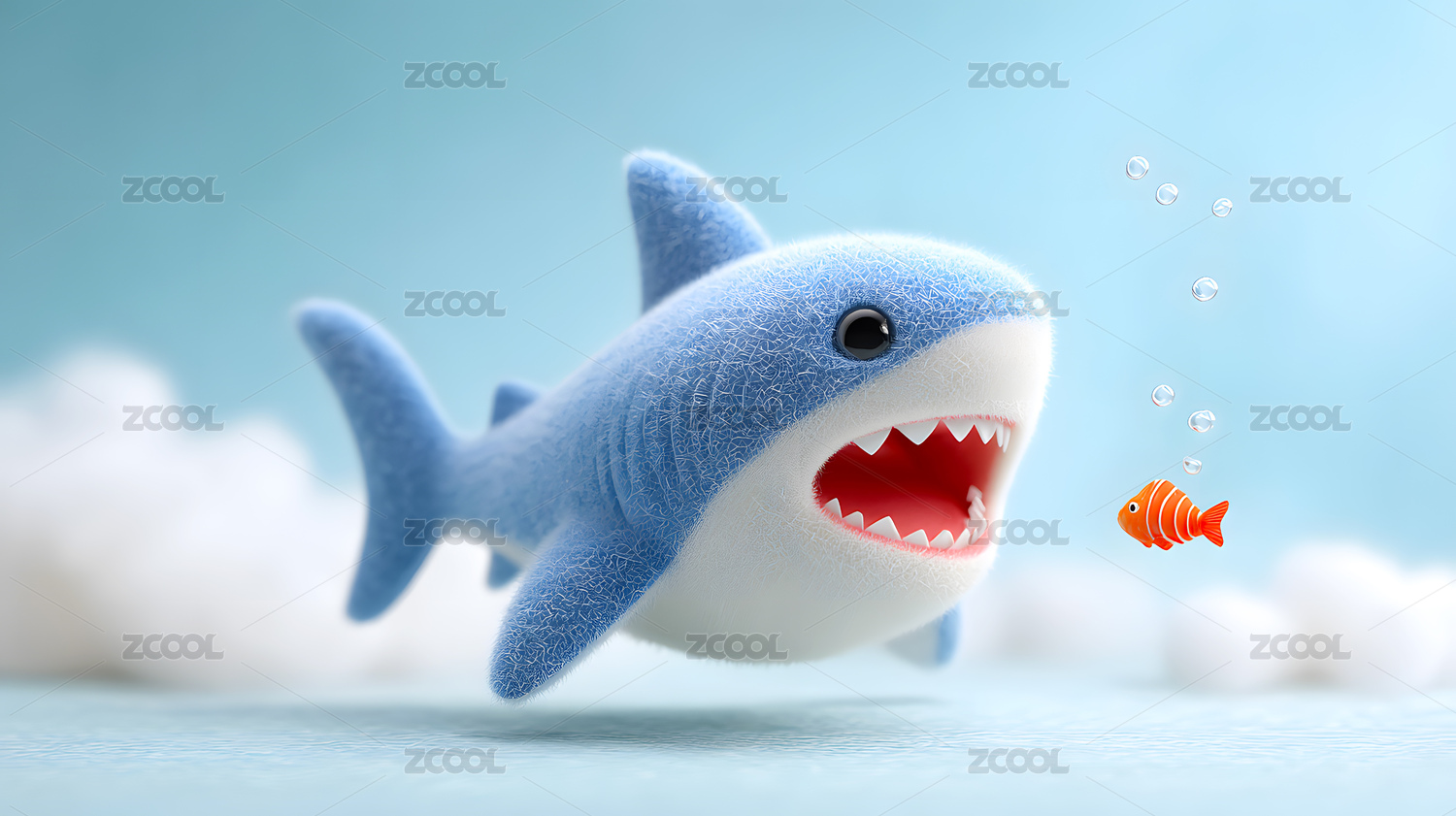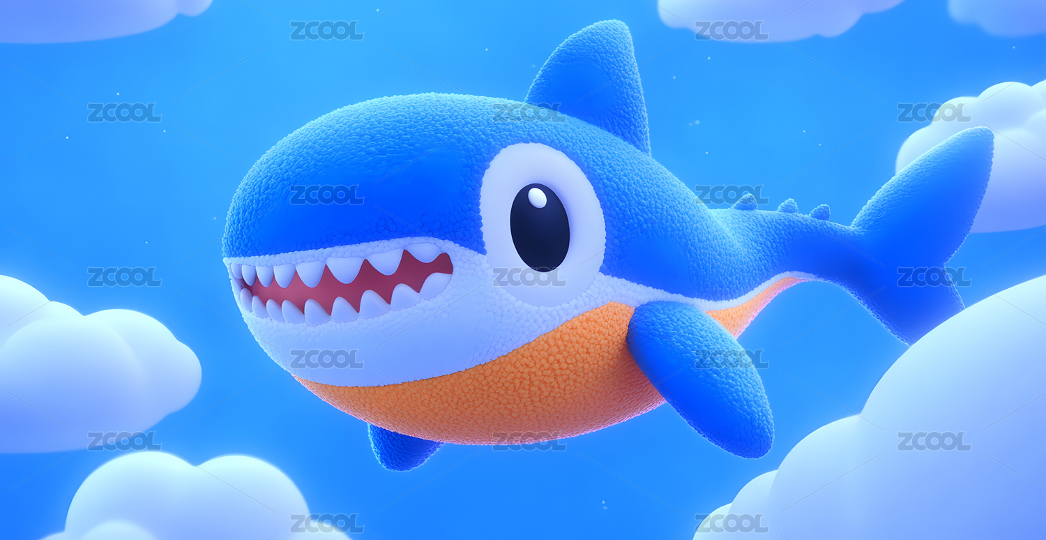 鲨鱼可爱唯美野生动物3D卡通插画壁纸