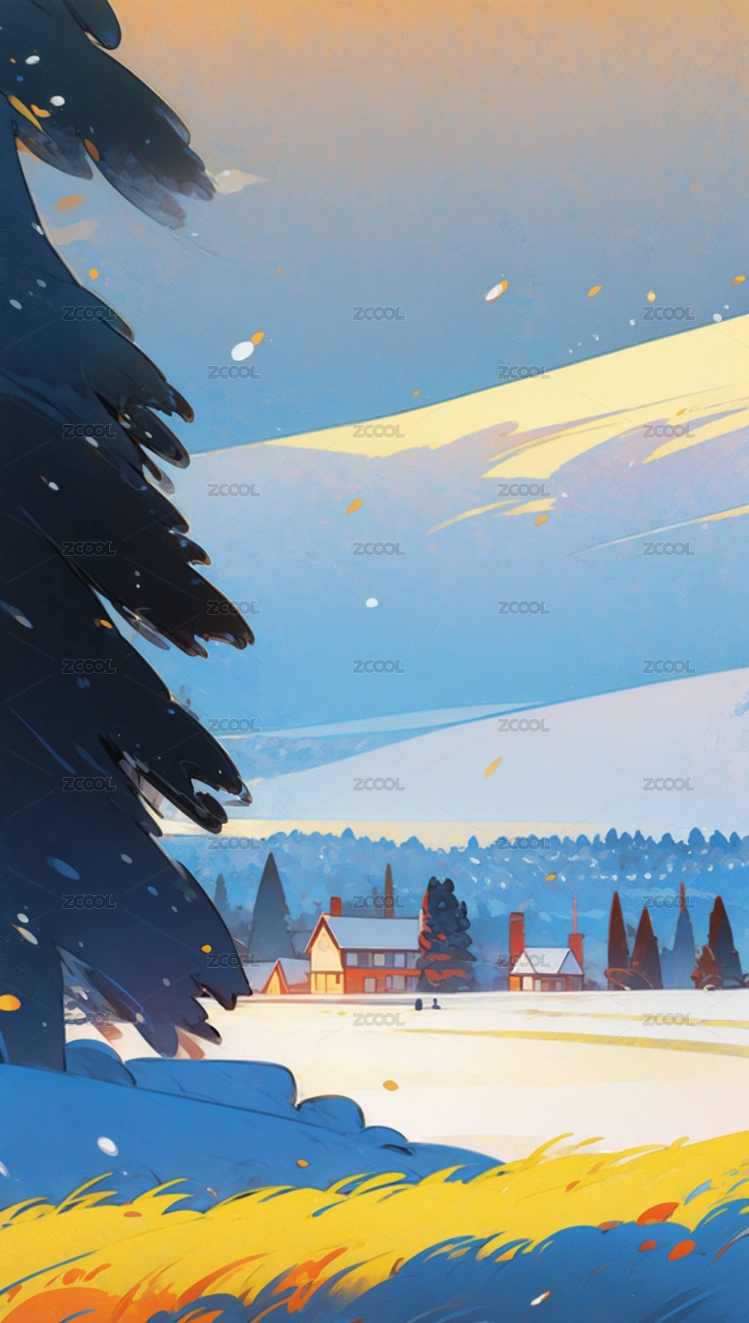 雪景乡村插画