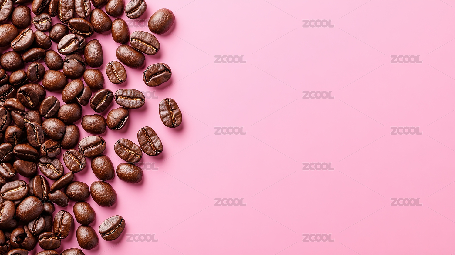 粉色背景咖啡豆散落图