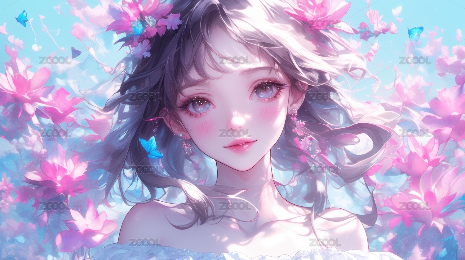 二次元梦幻浪漫女性壁纸装饰画
