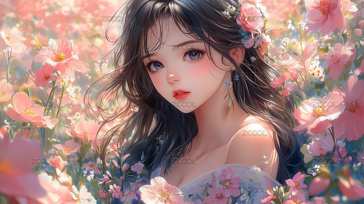 花海中的梦幻少女