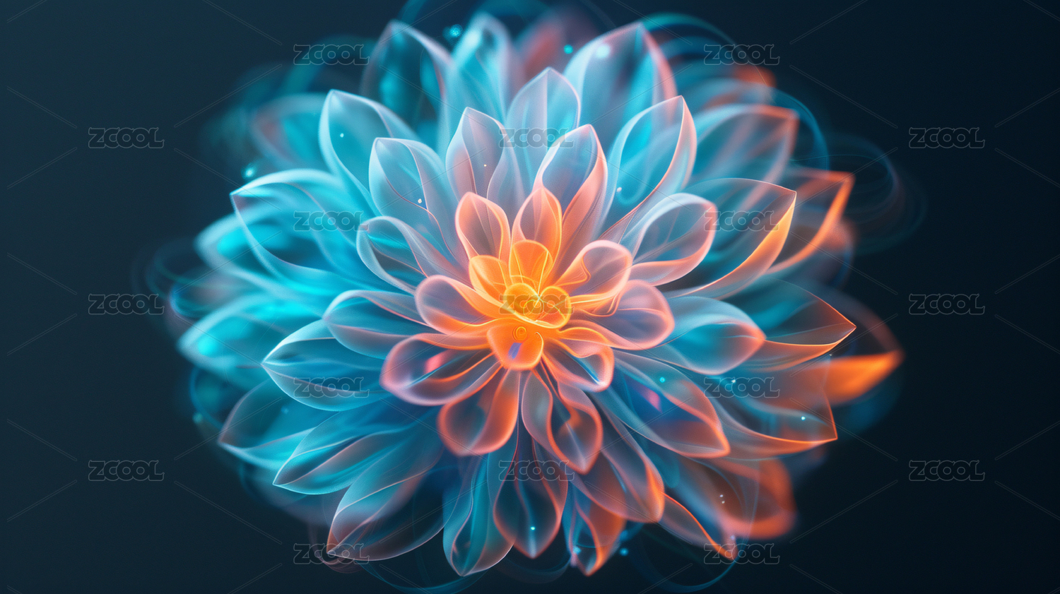 蓝绿色抽象光线花朵