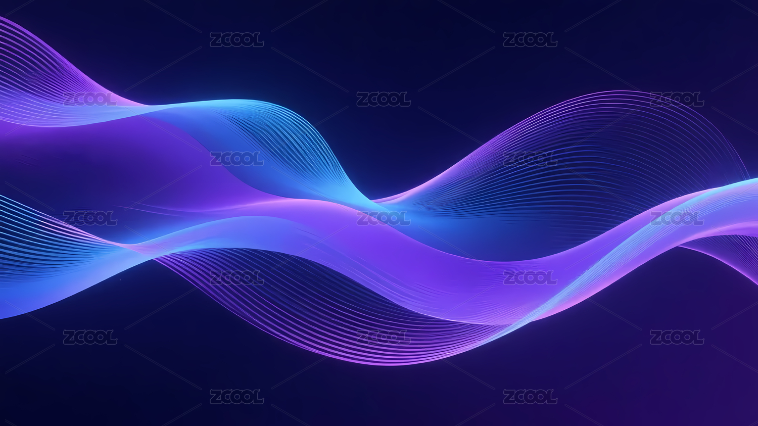 数码紫蓝色发光波浪曲线抽象图形海报背景