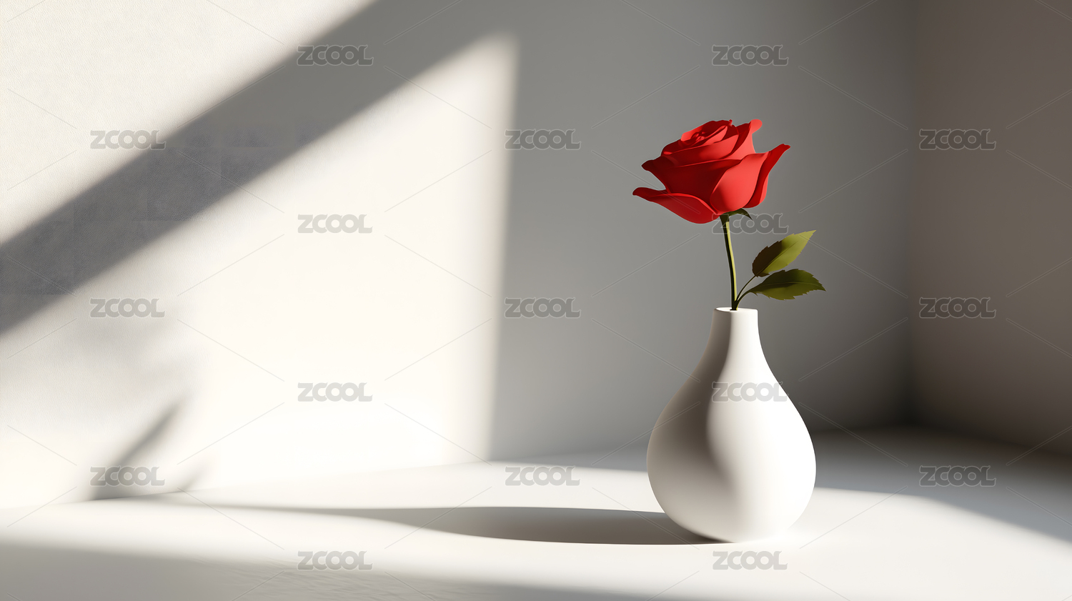 简约,红玫瑰,鲜艳,白色,底座,现代,浅灰,墙壁,圆柱形,物体