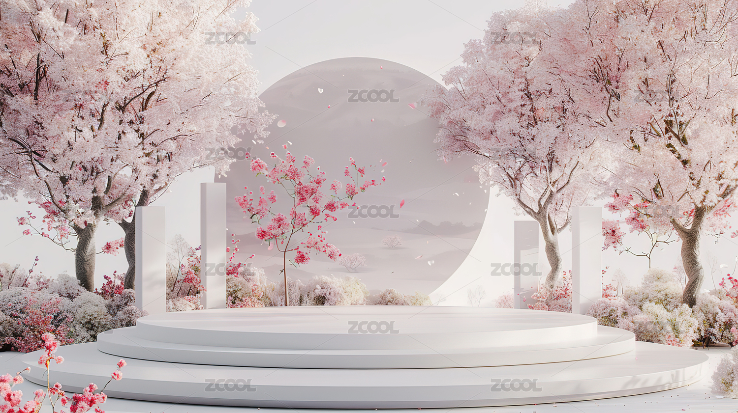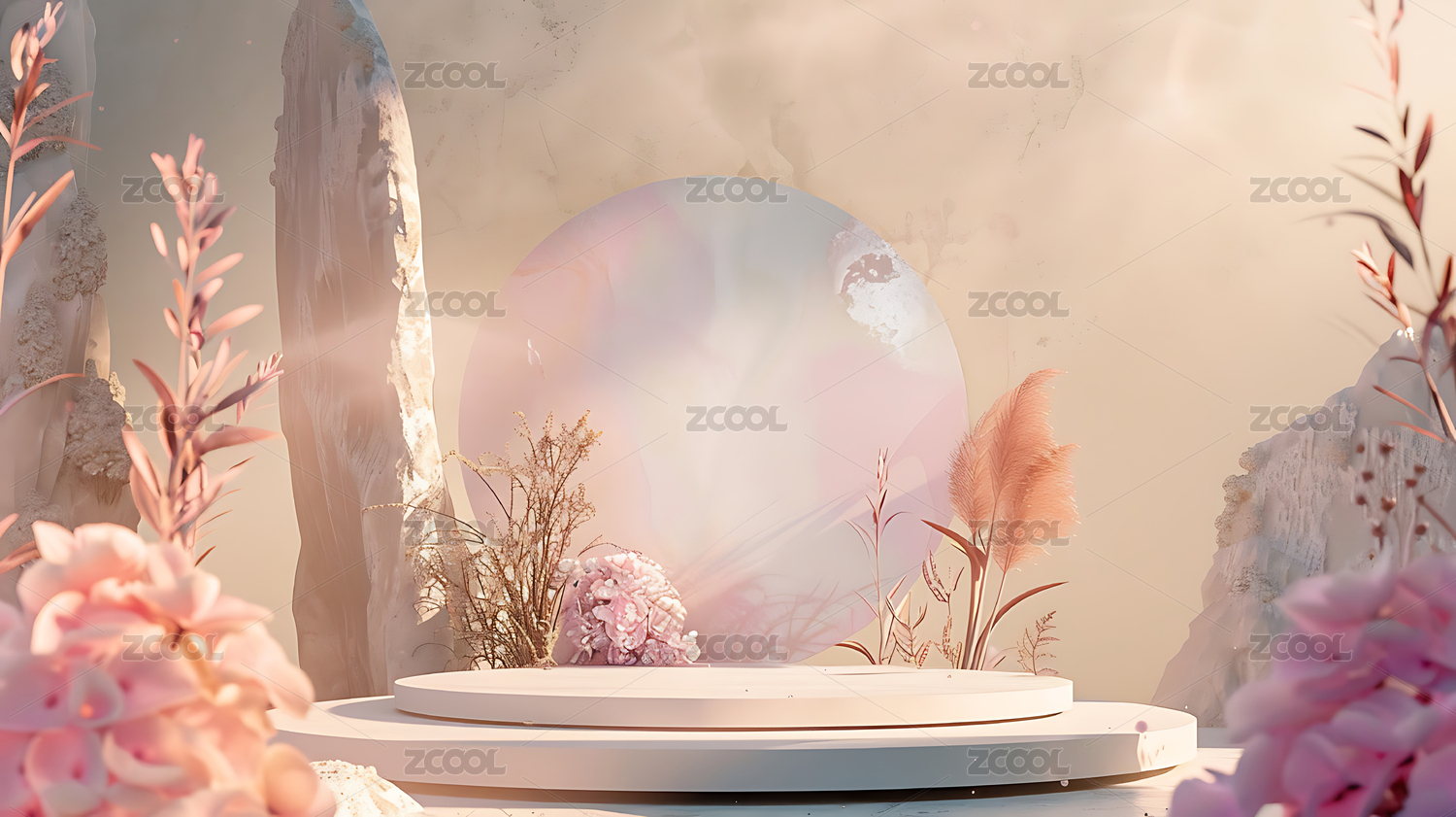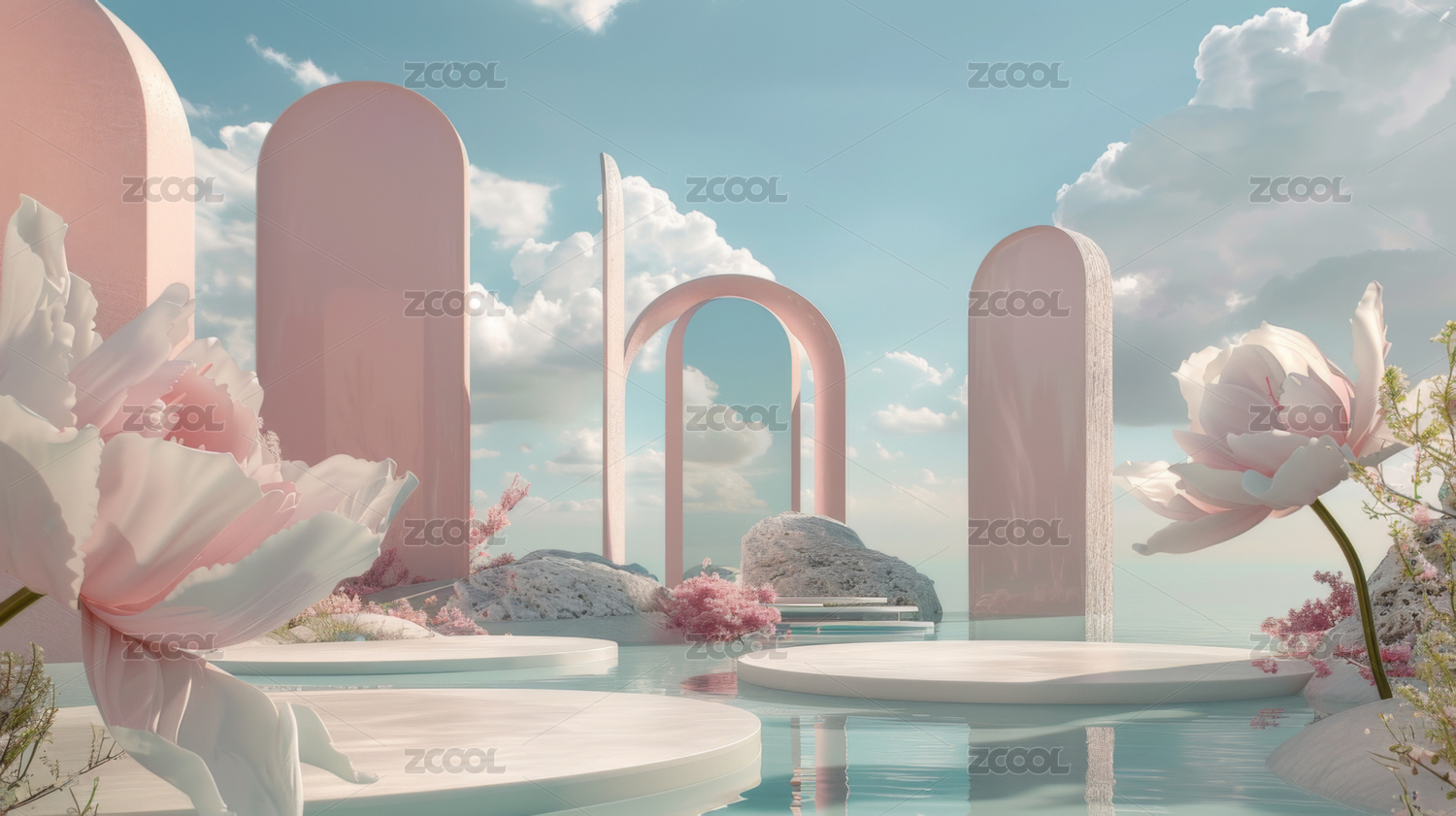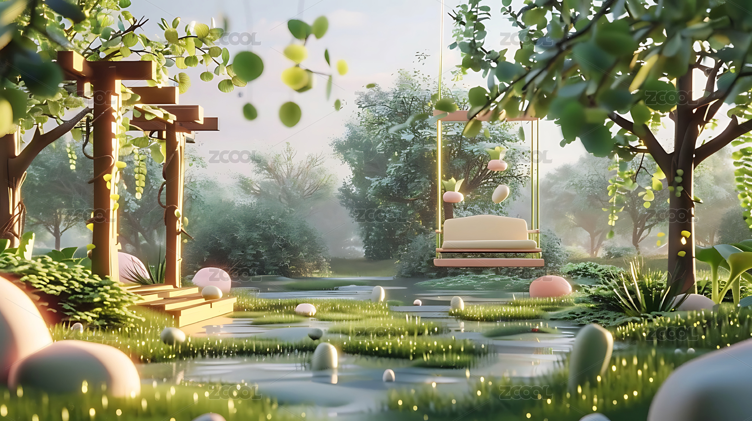 长苔藓毛绒植物石拱门儿童花园3D卡通插画