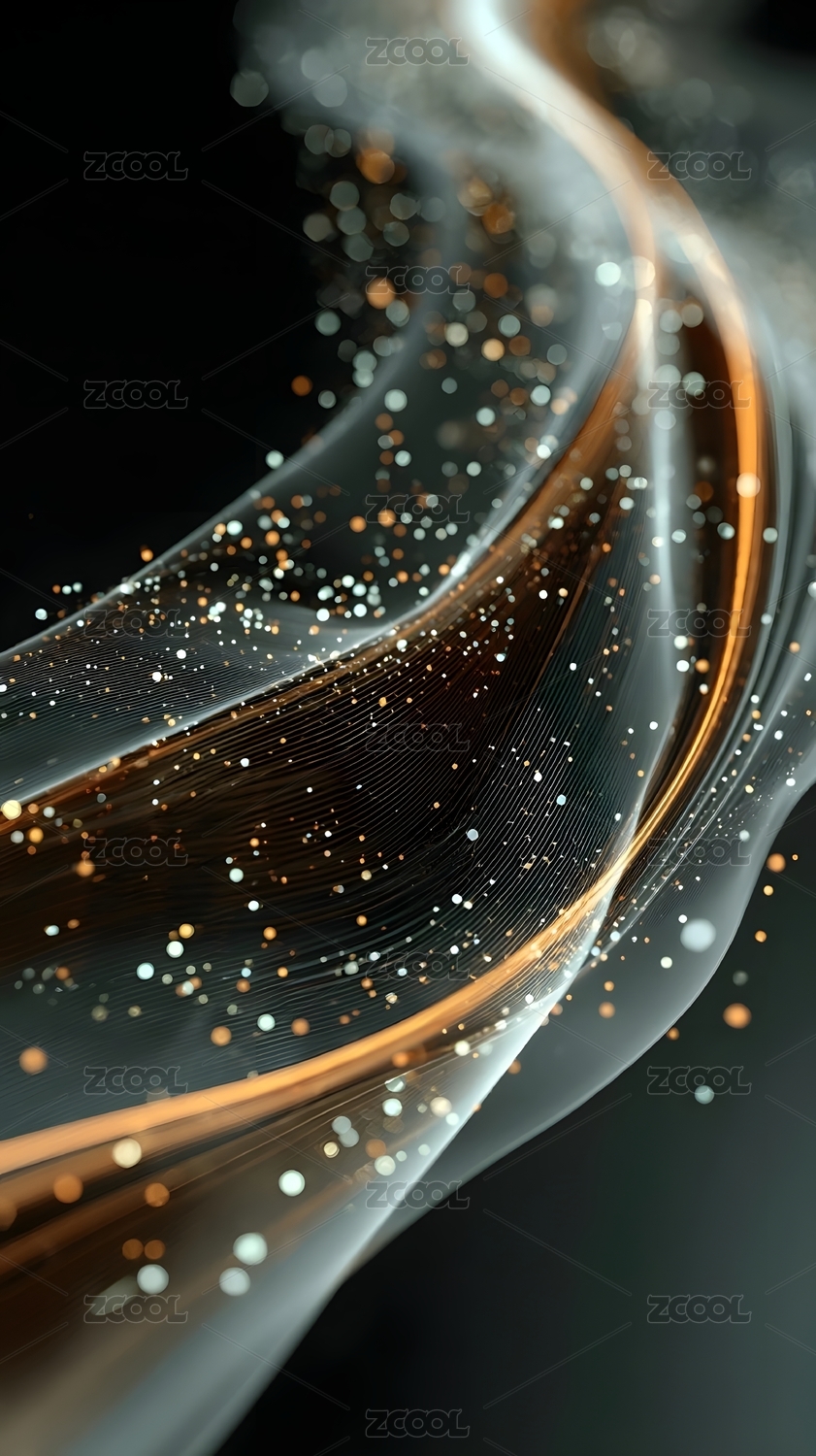 光线,流动,曲线,金色,银色,黑色,背景,闪耀,粒子,抽象