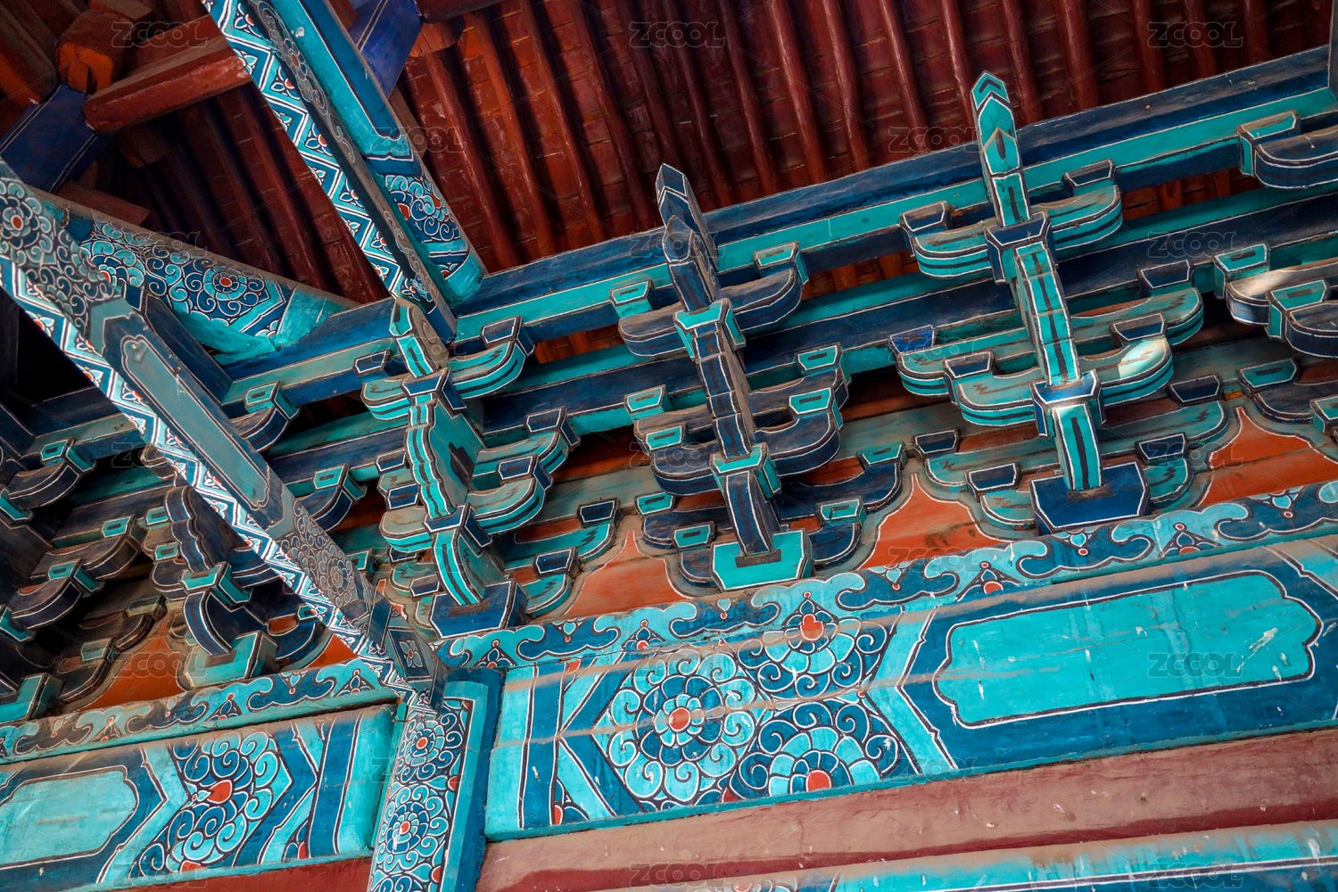 中国山西省恒山景区屋檐斗拱装饰园林建筑