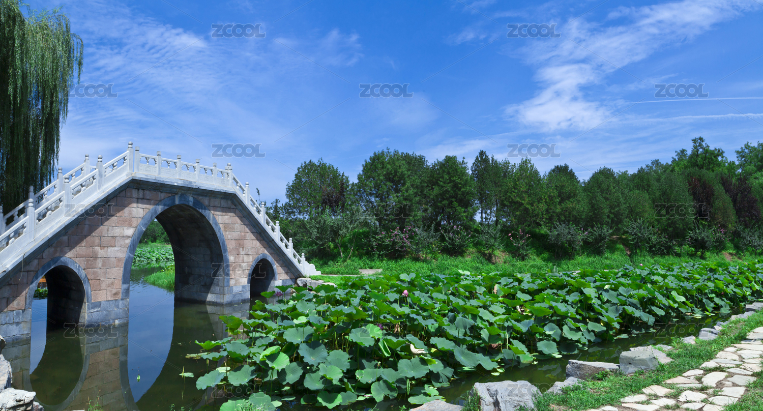 山东济南大明湖湿地公园拱桥五孔桥建筑