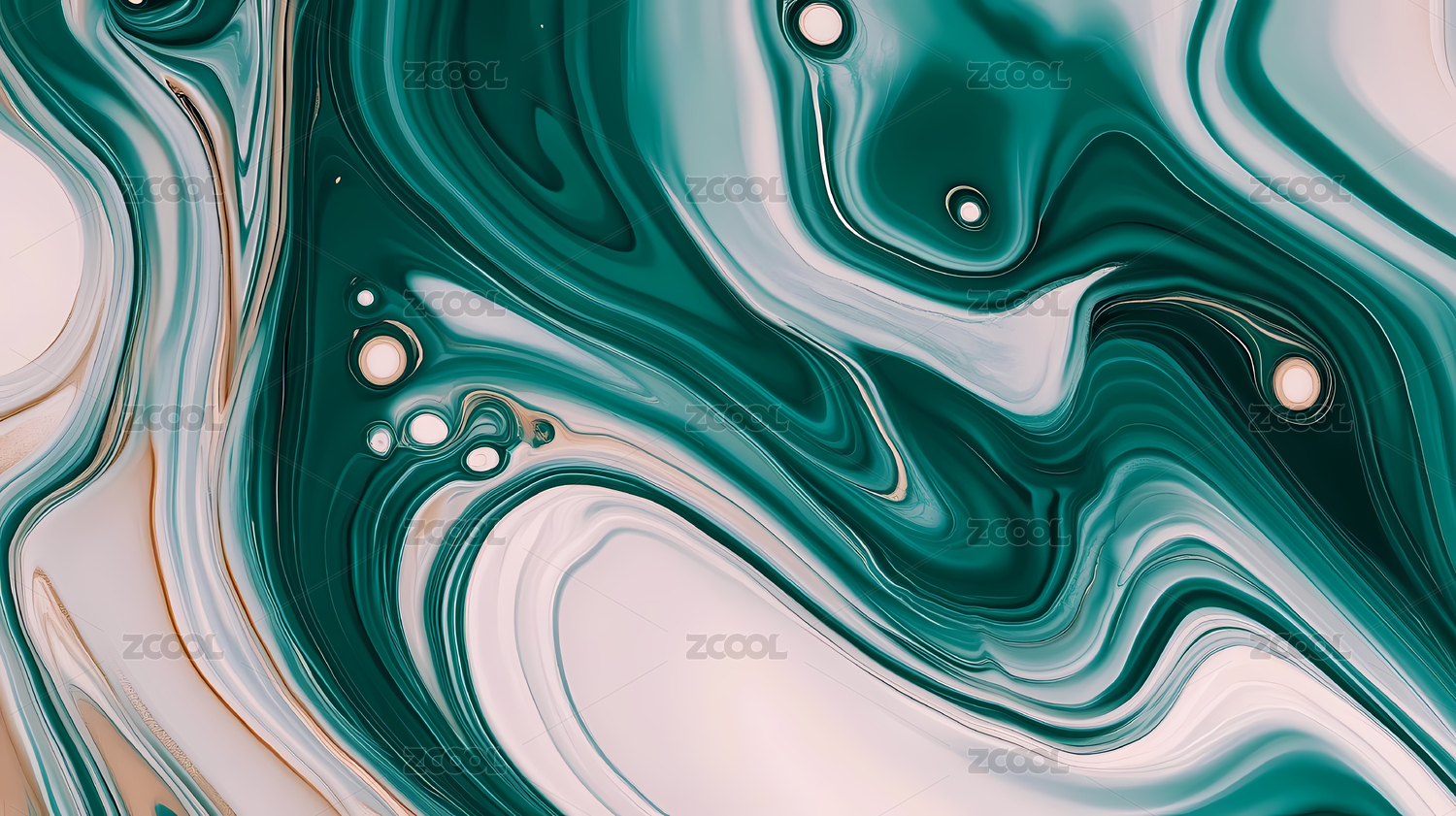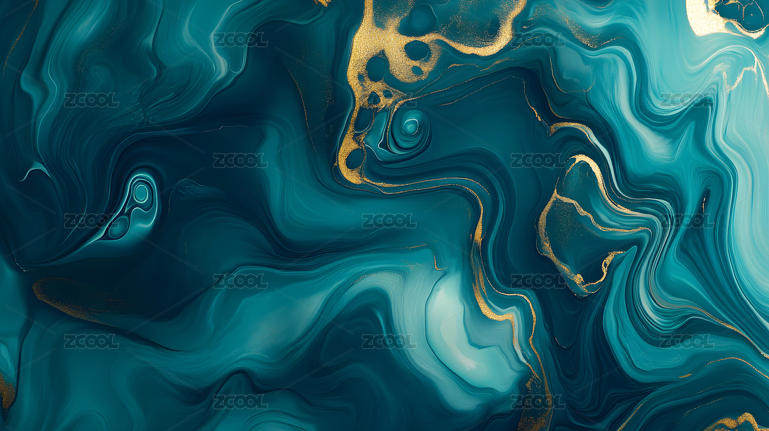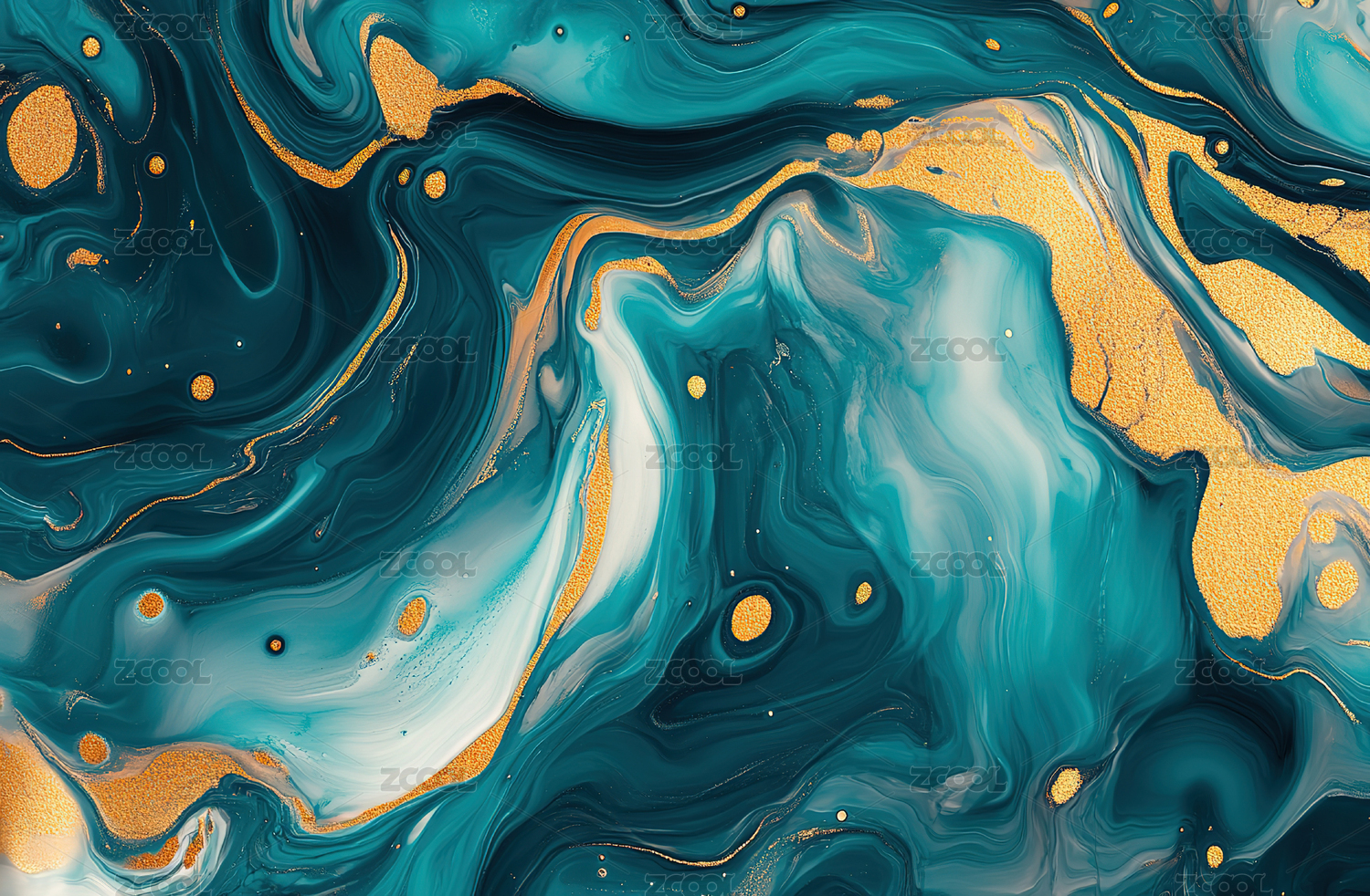 绿色颜料与金箔抽象流体背景
