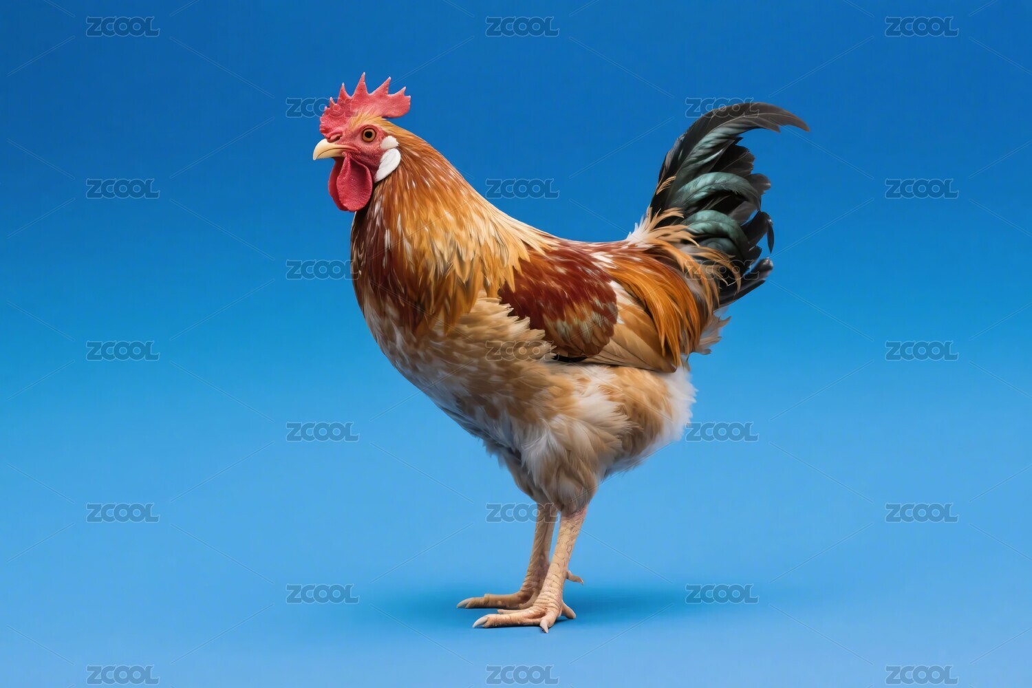色彩艳丽的单只公鸡形象