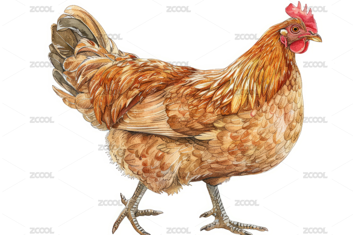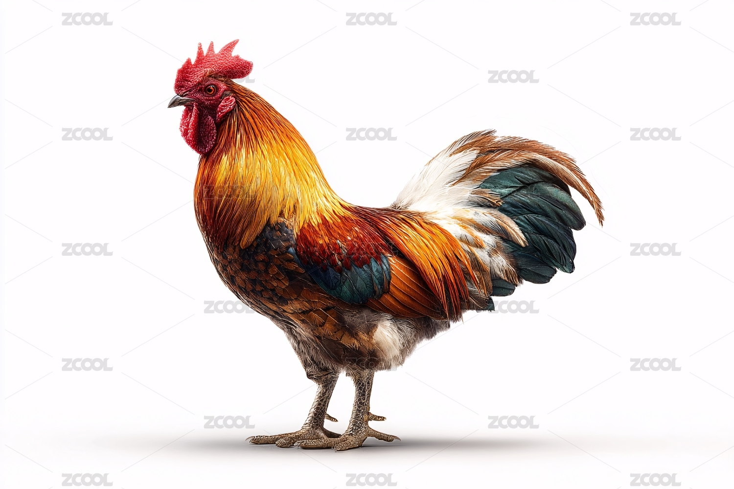 鸡,公鸡,一只,白色背景,白底,散养鸡,土鸡,鸡冠,活鸡,棕色