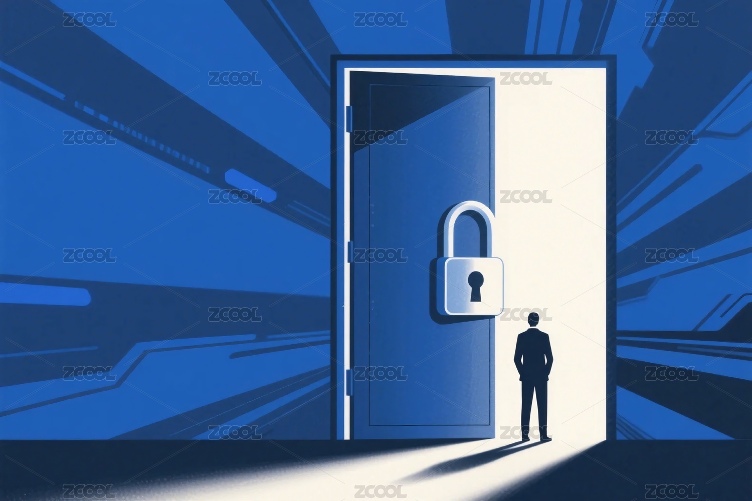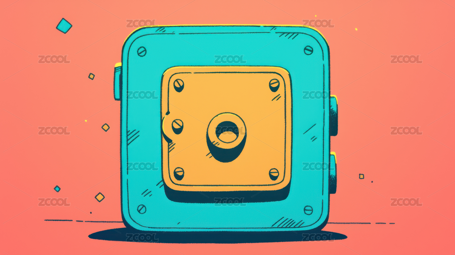 现代设计,红色,插画,金属质感,蓝色,简约风格,保险箱,黄色背景,安全,锁